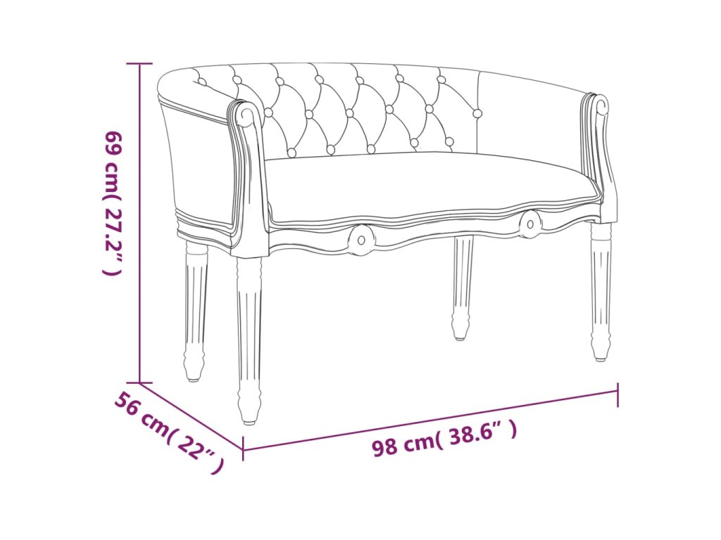 - Mäkký zamat: Táto lavička je vyrobená zo zamatu. Zamat je mäkká, luxusná látka, ktorá sa vyznačuje hustými rovnomerne strihanými vláknami, ktoré sú hladké na dotyk. Zamatová tkanina je jemná, vďaka čomu je pohodlná a príjemná na dotyk.