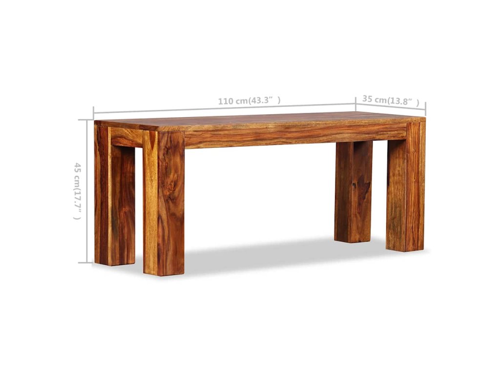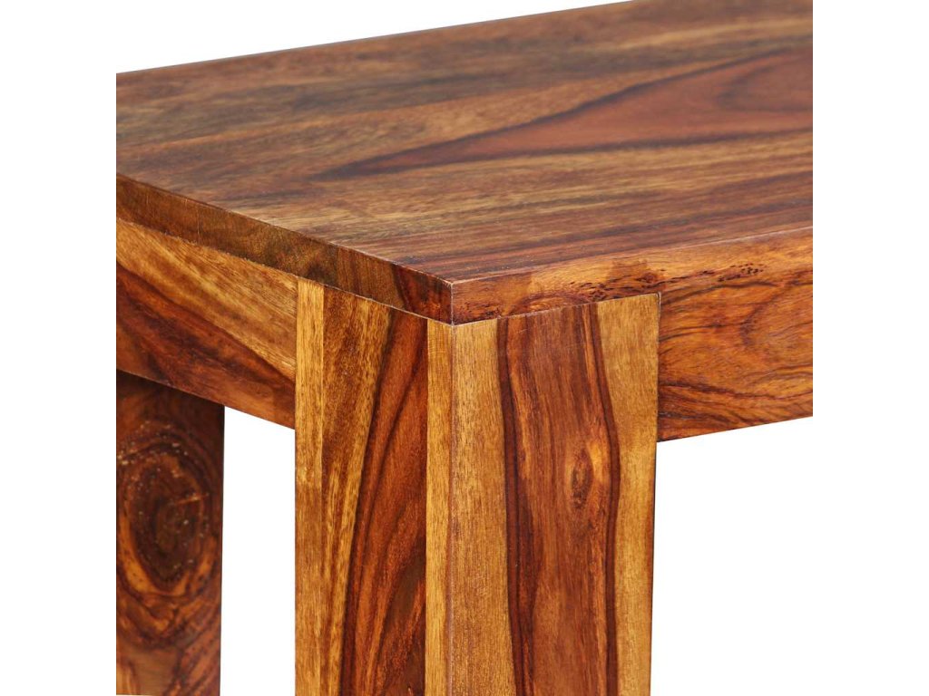 Lavička je vyrobená z masívneho akáciového dreva. Akácia je tiež známy aj ako palisandrové alebo ružové drevo. Je to tropické drevo vyznačujúce sa svojou bohatou štruktúrou. Lavička je celá ručne vyrobená a krásne vzory dreva zaručujú, že je každý kus jedinečný a trochu odlišný od ďalšieho kusu. Jej pevné drevené nožičky zaisťujú celkovú pevnosť nábytku. Montáž je jednoduchá.