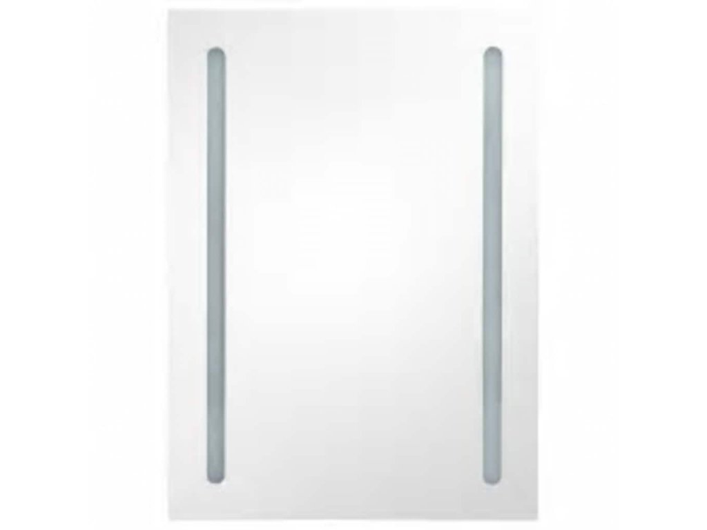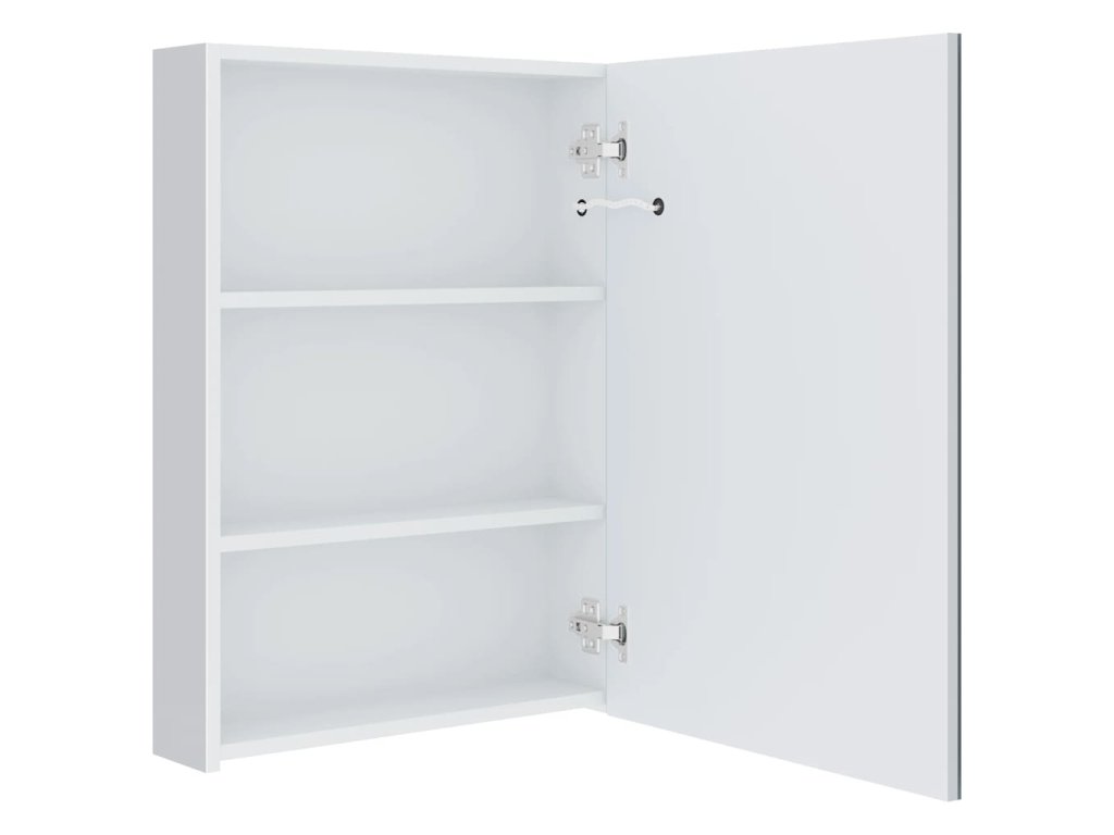 Je vyrobená z kvalitnej MDF dosky s melamínovým povrchom, čo zaručuje dlhodobé použitie. Vďaka dvom energeticky účinným LED pásikom sa budete vidieť v tom najlepšom svetle pri nanášaní make-upu, česaní a starostlivosti o pleť. Osvetlí tak nielen vašu izbu, tvár, ale aj úsmev. Vnútri sa nachádzajú 3 police, ktoré poskytujú dostatok úložného miesta na všetky toaletné potreby a kozmetiku. Pomocou spodného tlačidla môžete svetlo ľahko zapínať a vypínať. Táto štýlová a funkčná skrinka dodá vašej izbe originálny dizajn!