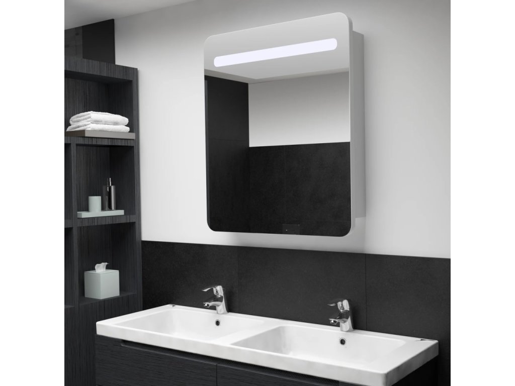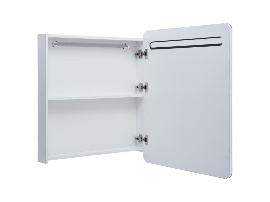 Je vyrobená z kvalitnej MDF dosky s melamínovým povrchom, čo zaručuje dlhodobé použitie. Vďaka integrovanej LED trubici sa budete vidieť v tom najlepšom svetle pri nanášaní make-upu, česaní a starostlivosti o pleť. Osvetlí tak nielen vašu izbu, tvár, ale aj úsmev. Dve poličky ponúkajú dostatok úložného miesta vo vašej kúpeľni. Jednoducho do nich uložíte svoje základné toaletné potreby a kozmetiku, ako sú mydlá, šampóny, zubnú pastu atď. Táto štýlová a funkčná skrinka dodá vašej kúpeľni originálny dizajn!