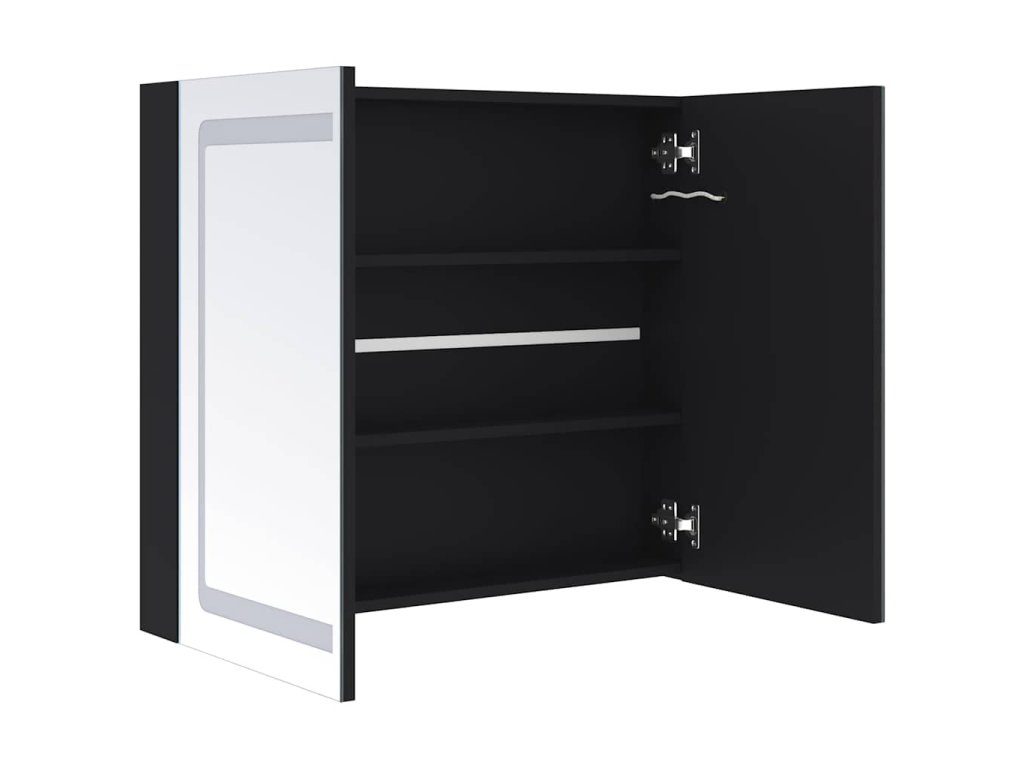 Je vyrobená z kvalitnej MDF dosky s melamínovým povrchom, čo zaručuje dlhodobé použitie. Vďaka energeticky účinnému LED pásiku sa budete vidieť v tom najlepšom svetle pri nanášaní make-upu, česaní a starostlivosti o pleť. Osvetlí tak nielen vašu izbu, tvár, ale aj úsmev. Pomocou spodného tlačidla môžete svetlá ľahko zapínať a vypínať. Dvoje dvierka navyše ukrývajú 3 police vo vnútri skrinky, ktoré ponúkajú dostatok úložného priestoru vo vašej kúpeľni. Jednoducho do nich uložíte svoje základné toaletné potreby a kozmetiku, ako sú mydlá, šampóny, zubnú pastu atď.