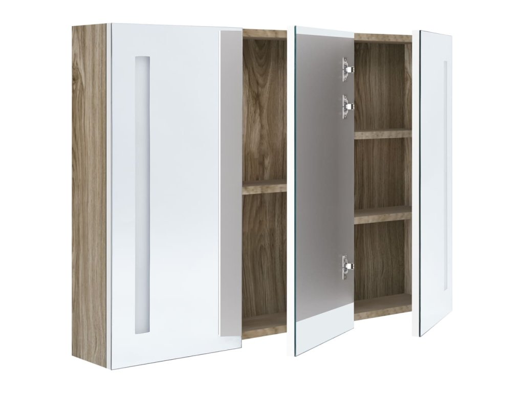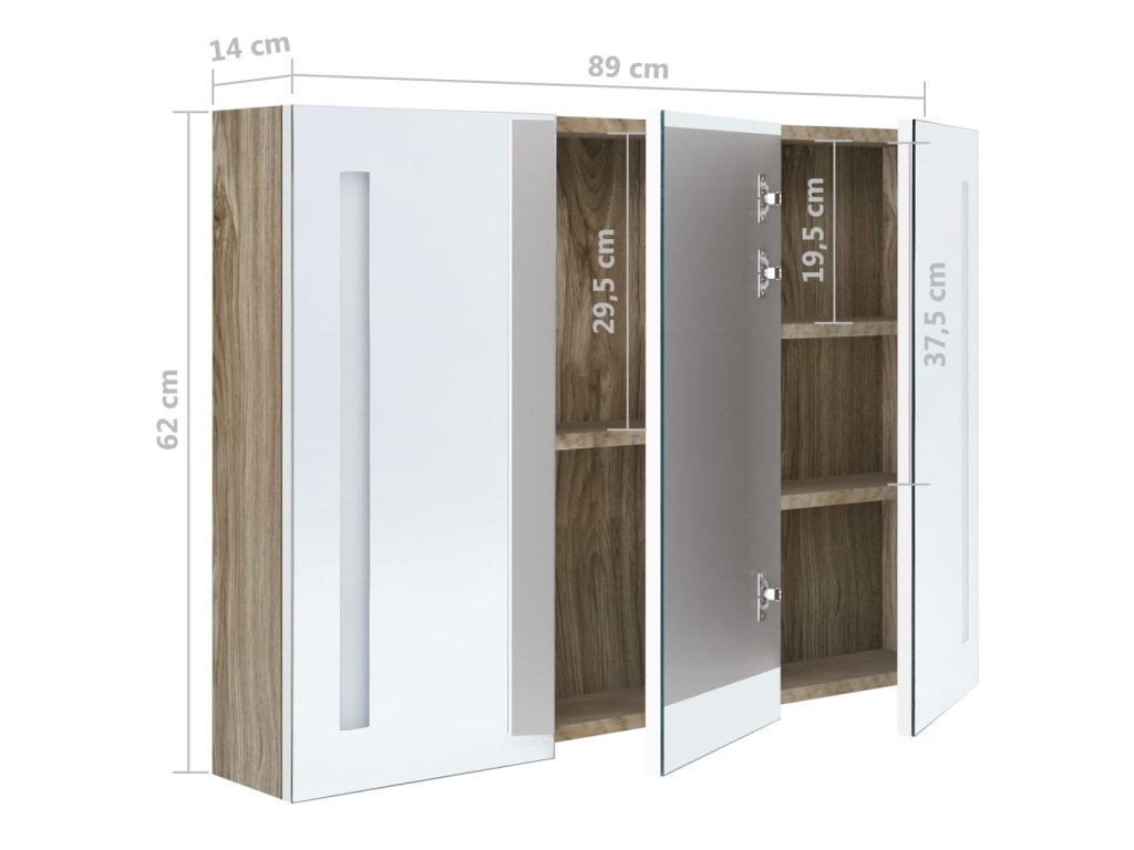 Je vyrobená z kvalitnej MDF dosky s melamínovým povrchom, čo zaručuje dlhodobé použitie. Vďaka dvom energeticky účinným LED pásikom sa budete vidieť v tom najlepšom svetle pri nanášaní make-upu, česaní a starostlivosti o pleť. Osvetlí tak nielen vašu izbu, tvár, ale aj úsmev. Vnútri sa nachádzajú 3 police, ktoré poskytujú dostatok úložného miesta na všetky toaletné potreby a kozmetiku. Pomocou spodného tlačidla môžete svetlo ľahko zapínať a vypínať. Táto štýlová a funkčná skrinka dodá vašej izbe originálny dizajn!