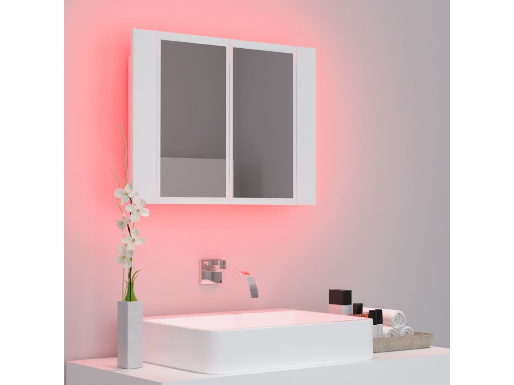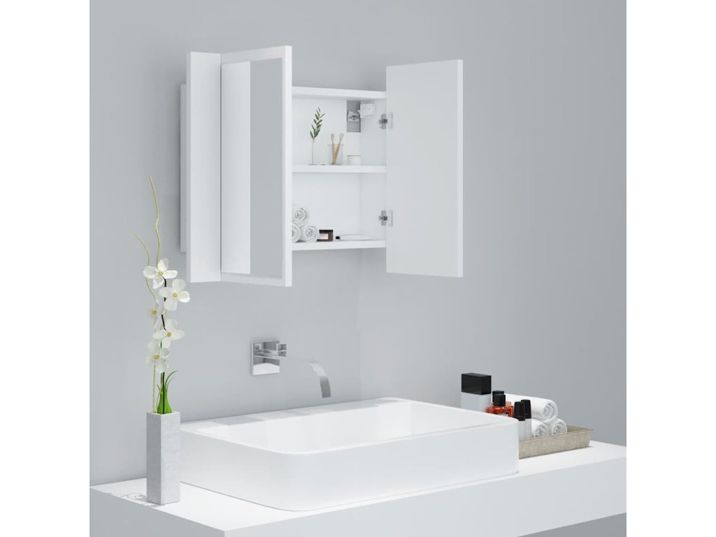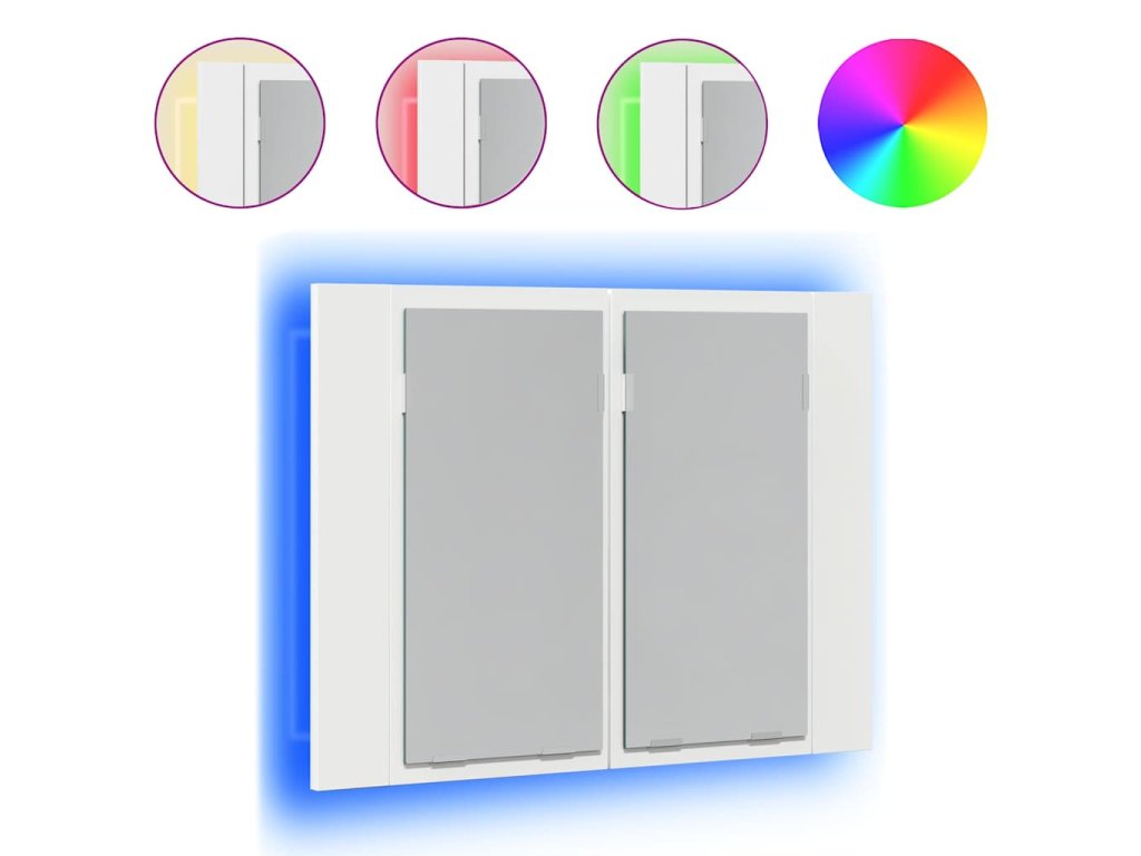 Kúpeľňová skrinka je vybavená RGB svetlom, takže je možné meniť farbu LED svetla. Dve poličky vo vnútri skrinky ponúkajú ďalší úložný priestor v kúpeľni. Ľahko sa do nich zmestia vaše nevyhnutné toaletné potreby a veci do kúpeľa, ako sú mydlá, šampóny, zubné pasty atď. Navyše sa dá ľahko čistiť vlhkou handričkou.