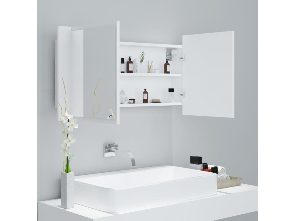 Kúpeľňová skrinka je vybavená RGB svetlom, takže je možné meniť farbu LED svetla. Dve poličky vo vnútri skrinky ponúkajú ďalší úložný priestor v kúpeľni. Ľahko sa do nich zmestia vaše nevyhnutné toaletné potreby a veci do kúpeľa, ako sú mydlá, šampóny, zubné pasty atď. Navyše sa dá ľahko čistiť vlhkou handričkou.