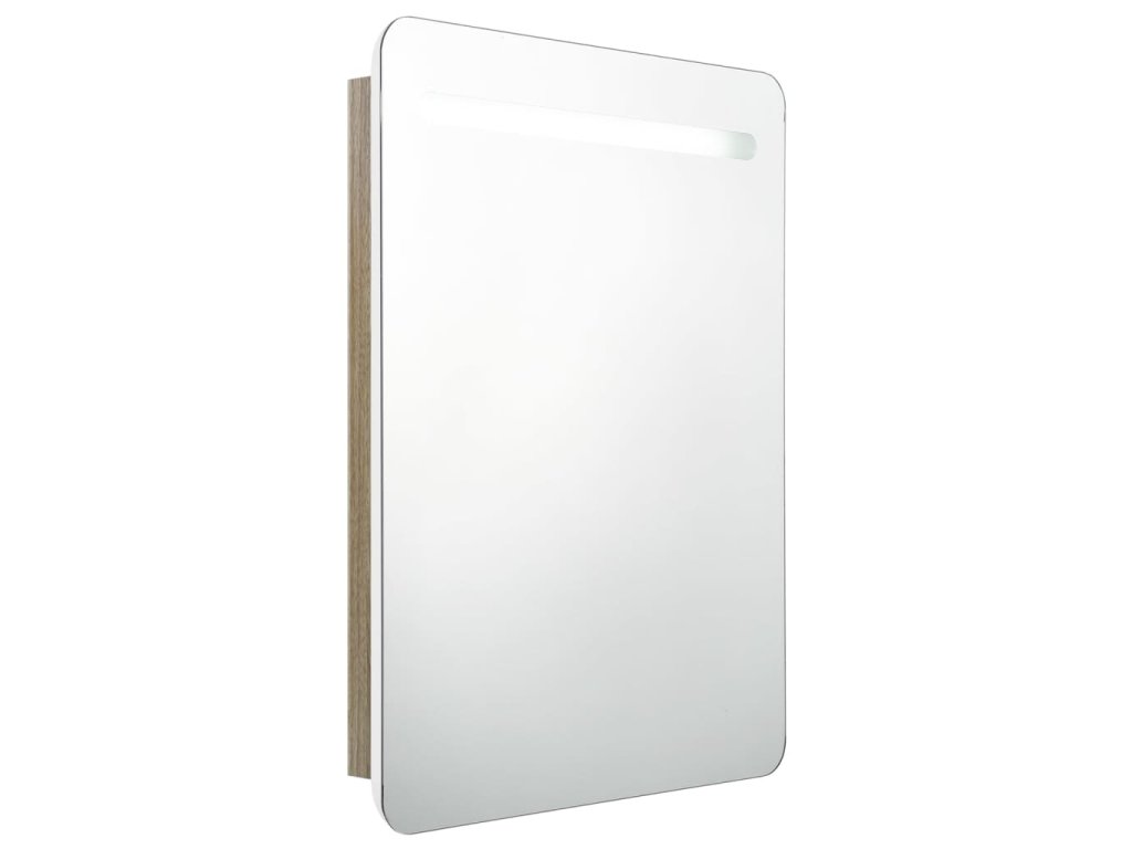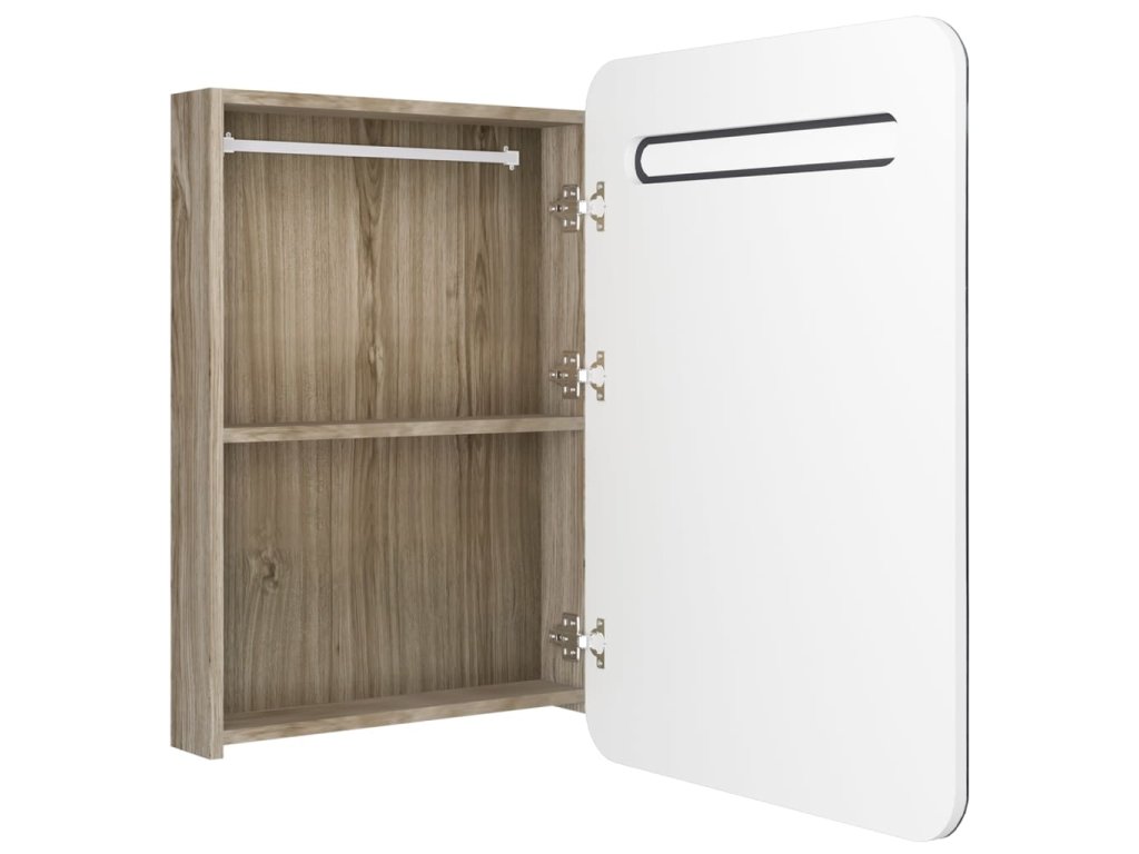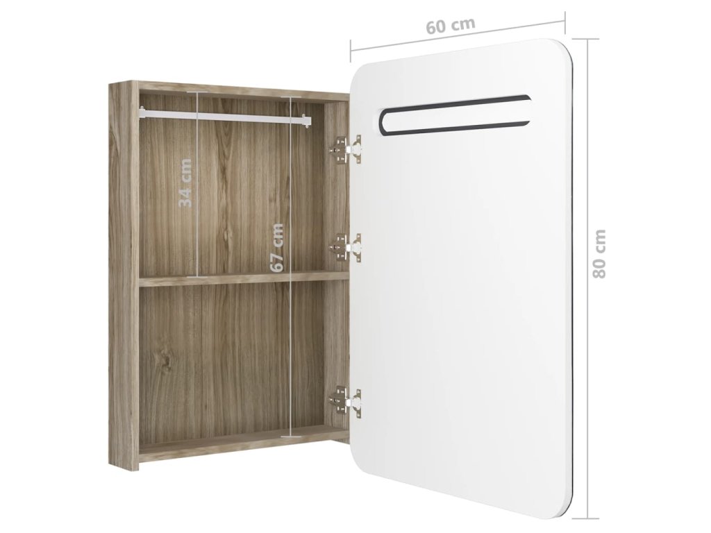 Je vyrobená z kvalitnej MDF dosky s melamínovým povrchom, čo zaručuje dlhodobé použitie. Vďaka integrovanej LED trubici sa budete vidieť v tom najlepšom svetle pri nanášaní make-upu, česaní a starostlivosti o pleť. Osvetlí tak nielen vašu izbu, tvár, ale aj úsmev. Dve poličky ponúkajú dostatok úložného miesta vo vašej kúpeľni. Jednoducho do nich uložíte svoje základné toaletné potreby a kozmetiku, ako sú mydlá, šampóny, zubnú pastu atď. Táto štýlová a funkčná skrinka dodá vašej kúpeľni originálny dizajn!