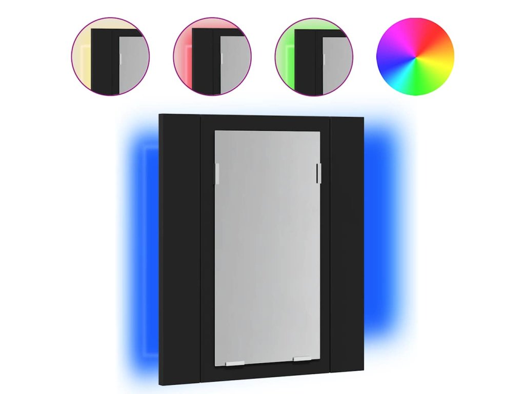 Kúpeľňová skrinka je vybavená RGB svetlom, takže je možné meniť farbu LED svetla. Dve poličky vo vnútri skrinky ponúkajú ďalší úložný priestor v kúpeľni. Ľahko sa do nich zmestia vaše nevyhnutné toaletné potreby a veci do kúpeľa, ako sú mydlá, šampóny, zubné pasty atď. Navyše sa dá ľahko čistiť vlhkou handričkou.