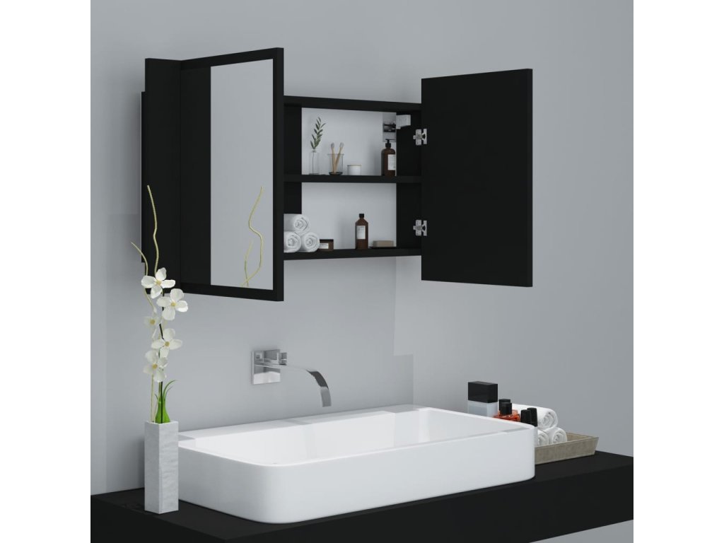 Kúpeľňová skrinka je vybavená RGB svetlom, takže je možné meniť farbu LED svetla. Dve poličky vo vnútri skrinky ponúkajú ďalší úložný priestor v kúpeľni. Ľahko sa do nich zmestia vaše nevyhnutné toaletné potreby a veci do kúpeľa, ako sú mydlá, šampóny, zubné pasty atď. Navyše sa dá ľahko čistiť vlhkou handričkou.