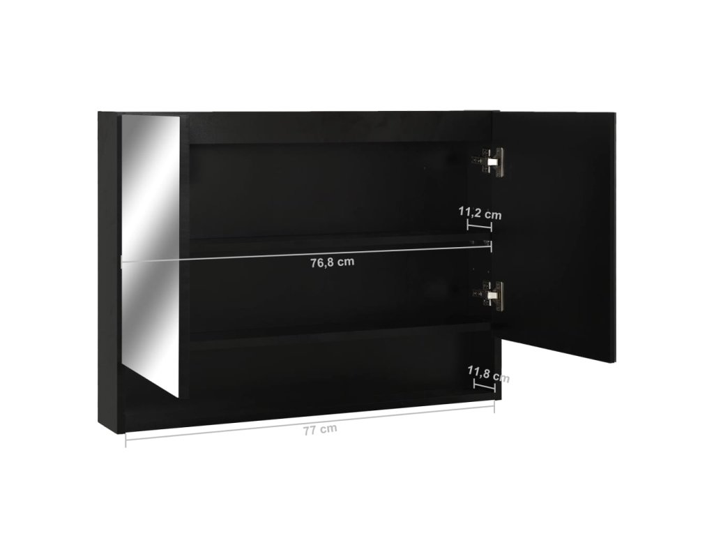 Skrinka je vyrobená z kvalitnej MDF dosky s melamínovým povrchom, a tak zaručuje dlhodobé používanie. Svetlo môžete jednoducho zapnúť/vypnúť tlačidlom. Energeticky úsporný LED pás vám poskytne to najlepšie osvetlenie na aplikáciu make-upu, holenie a starostlivosť o pleť. 2 dvierka a 3 police vo vnútri skrinky ponúkajú dostatok úložného priestoru. Zmestia sa do nich vaše najdôležitejšie hygienické a kozmetické potreby, ako sú mydlá, šampóny, zubné pasty atď. V strede skrinky sa nachádza pohyblivá priečka, ktorú si môžete nainštalovať podľa svojich predstáv. Dá sa ľahko očistiť vlhkou handričkou.