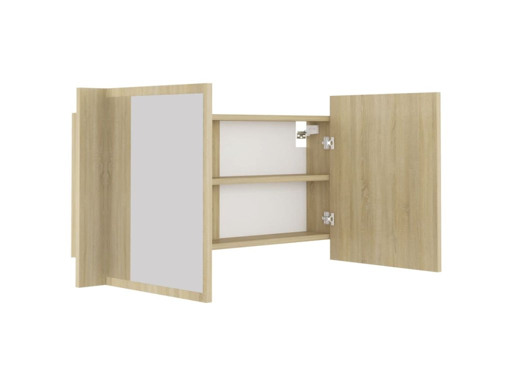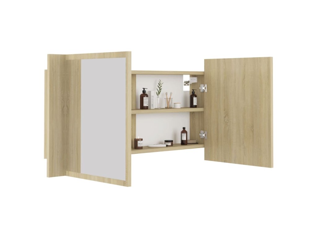 Kúpeľňová skrinka je vybavená RGB svetlom, takže je možné meniť farbu LED svetla. Dve poličky vo vnútri skrinky ponúkajú ďalší úložný priestor v kúpeľni. Ľahko sa do nich zmestia vaše nevyhnutné toaletné potreby a veci do kúpeľa, ako sú mydlá, šampóny, zubné pasty atď. Navyše sa dá ľahko čistiť vlhkou handričkou.