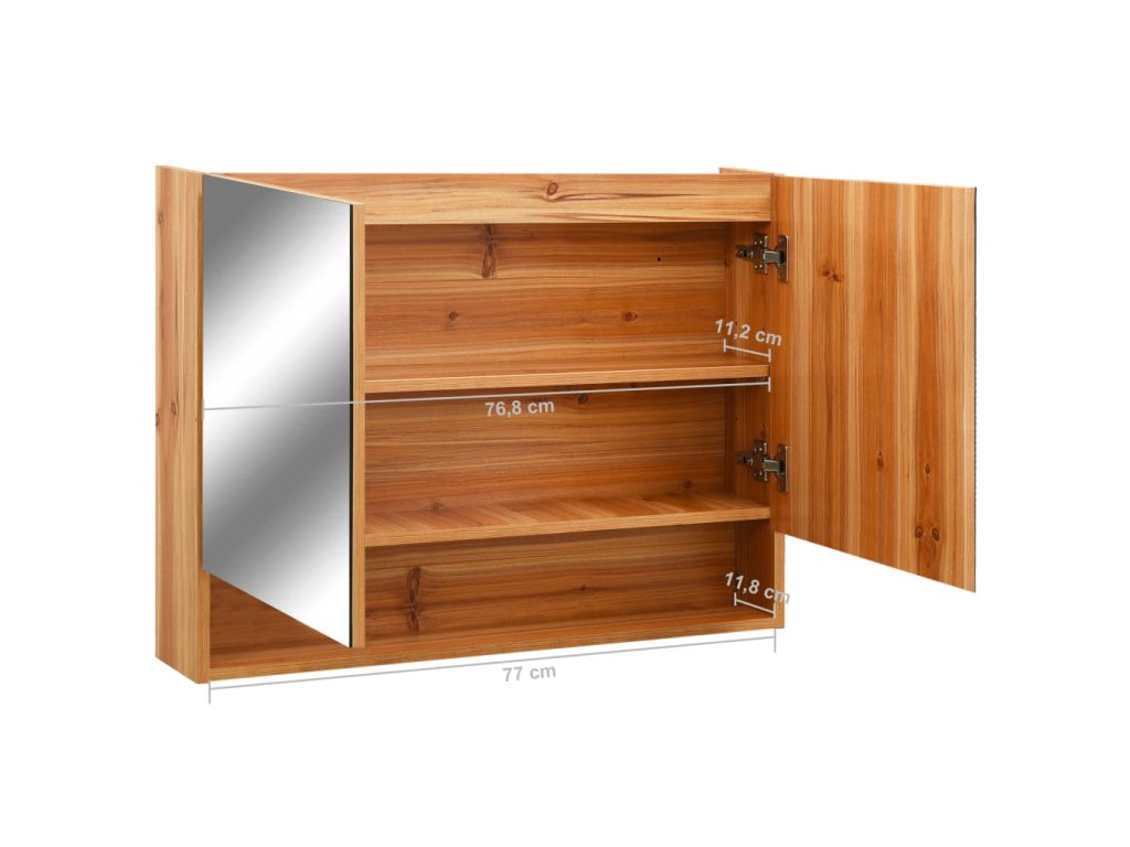 Skrinka je vyrobená z kvalitnej MDF dosky s melamínovým povrchom, a tak zaručuje dlhodobé používanie. Svetlo môžete jednoducho zapnúť/vypnúť tlačidlom. Energeticky úsporný LED pás vám poskytne to najlepšie osvetlenie na aplikáciu make-upu, holenie a starostlivosť o pleť. 2 dvierka a 3 police vo vnútri skrinky ponúkajú dostatok úložného priestoru. Zmestia sa do nich vaše najdôležitejšie hygienické a kozmetické potreby, ako sú mydlá, šampóny, zubné pasty atď. V strede skrinky sa nachádza pohyblivá priečka, ktorú si môžete nainštalovať podľa svojich predstáv. Dá sa ľahko očistiť vlhkou handričkou.