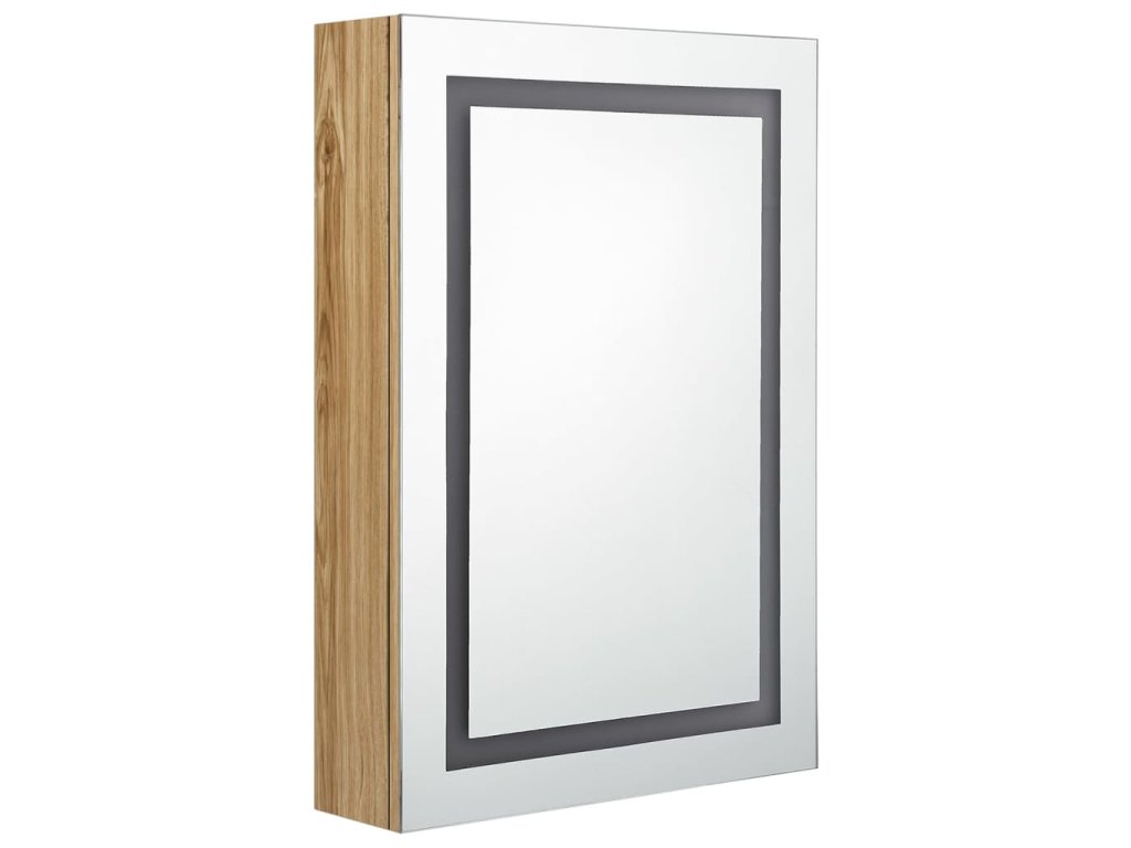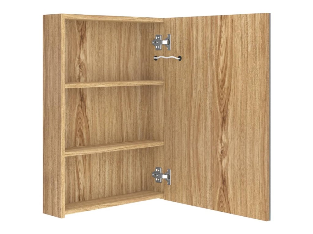 Táto nástenná skrinka je vyrobená z MDF dosky s melamínovým povrchom, čo zaručuje dlhodobé použitie. Vďaka dvojitému energeticky účinnému LED pásiku sa budete vidieť v tom najlepšom svetle pri nanášaní make-upu, česaní a starostlivosti o pleť. Osvetlí tak nielen vašu izbu, tvár, ale aj úsmev. Vnútri sa nachádzajú 3 police, ktoré poskytujú dostatok úložného miesta na všetky toaletné potreby a kozmetiku. Pomocou spodného tlačidla môžete svetlo ľahko zapínať a vypínať. Táto štýlová a funkčná skrinka dodá vašej izbe originálny dizajn!