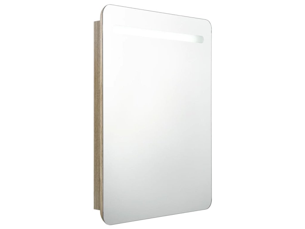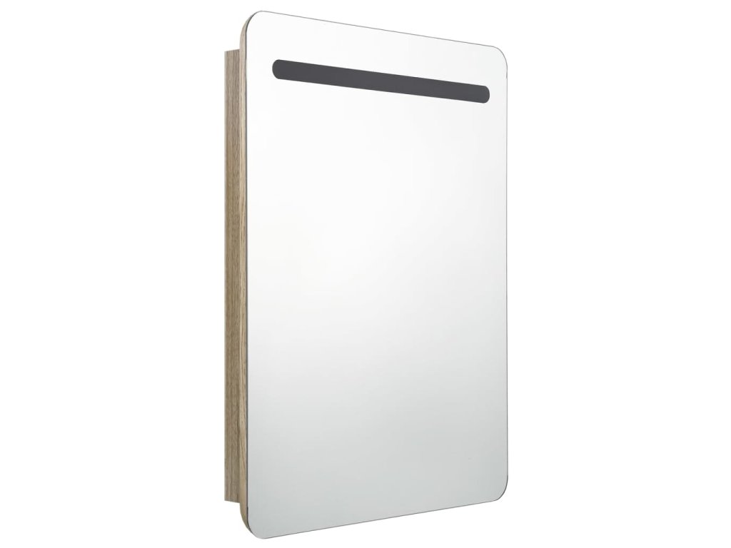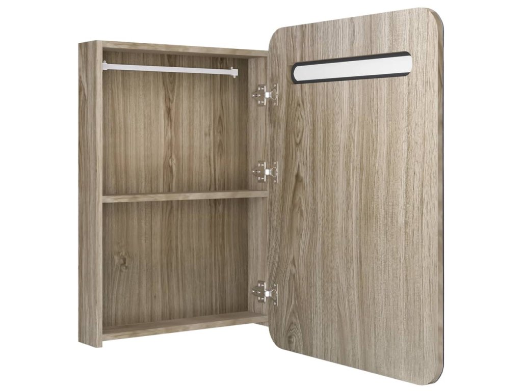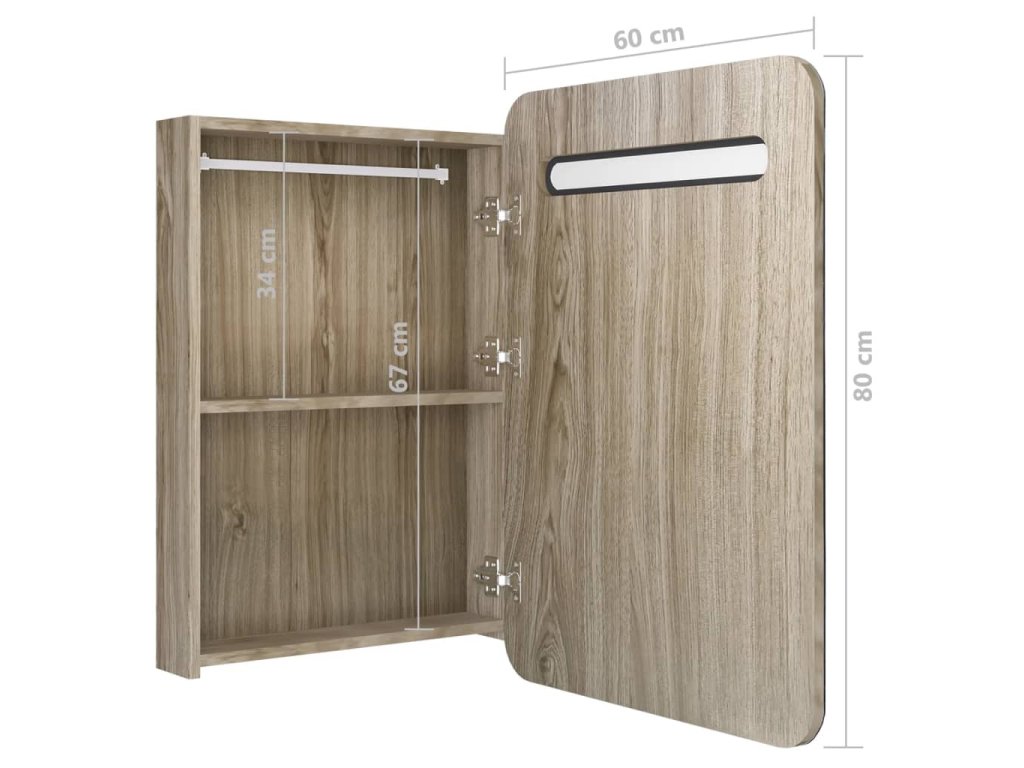 Je vyrobená z kvalitnej MDF dosky s melamínovým povrchom, čo zaručuje dlhodobé použitie. Vďaka integrovanej LED trubici sa budete vidieť v tom najlepšom svetle pri nanášaní make-upu, česaní a starostlivosti o pleť. Osvetlí tak nielen vašu izbu, tvár, ale aj úsmev. Dve poličky ponúkajú dostatok úložného miesta vo vašej kúpeľni. Jednoducho do nich uložíte svoje základné toaletné potreby a kozmetiku, ako sú mydlá, šampóny, zubnú pastu atď. Táto štýlová a funkčná skrinka dodá vašej kúpeľni originálny dizajn!