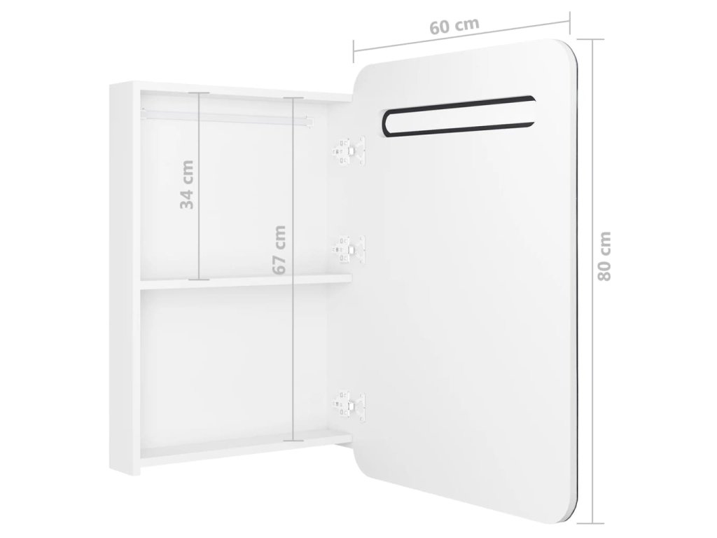 Je vyrobená z kvalitnej MDF dosky s melamínovým povrchom, čo zaručuje dlhodobé použitie. Vďaka integrovanej LED trubici sa budete vidieť v tom najlepšom svetle pri nanášaní make-upu, česaní a starostlivosti o pleť. Osvetlí tak nielen vašu izbu, tvár, ale aj úsmev. Dve poličky ponúkajú dostatok úložného miesta vo vašej kúpeľni. Jednoducho do nich uložíte svoje základné toaletné potreby a kozmetiku, ako sú mydlá, šampóny, zubnú pastu atď. Táto štýlová a funkčná skrinka dodá vašej kúpeľni originálny dizajn!