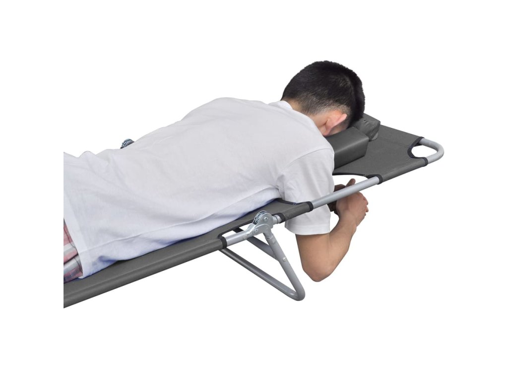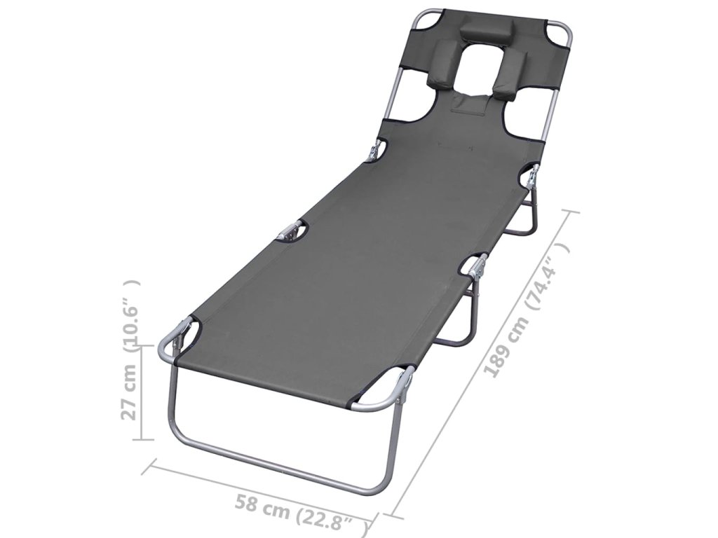 Skladacie opaľovacie lehátko s vankúšom je ako stvorené na odpočinok a užívanie si dňa na záhrade alebo pri vode. Lehátko je vybavené pohodlným nastaviteľným operadlom.