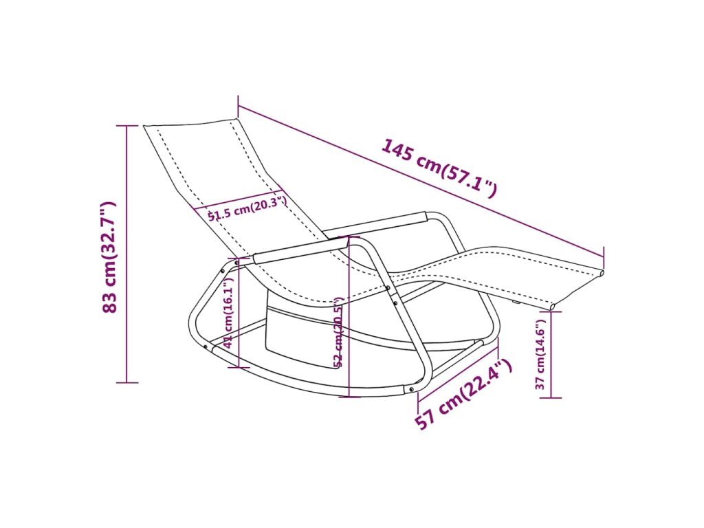 Záhradné ležadlo má oceľový rám, vďaka čomu je stabilné a odolné. Lehátko je vyrobené z vodeodolnej a priedušnej látky Textilén, vďaka čomu je lehátko odolné, nenáročné na údržbu a vhodné na každodenné vonkajšie používanie. Hojdacie kreslo je navrhnuté so zakriveným operadlom a opierkami na ruky, aby vám poskytlo optimálne pohodlie pri sedení. Do bočného vrecka navyše môžete vložiť mobilné telefóny, časopisy a ďalšie drobnosti.