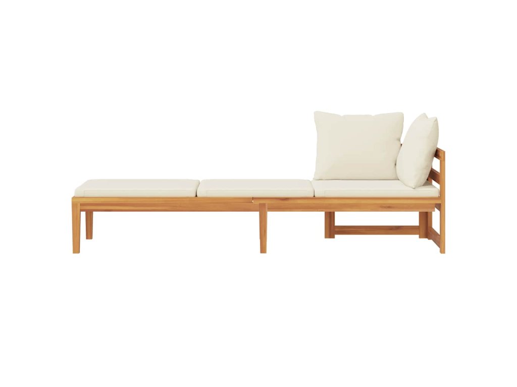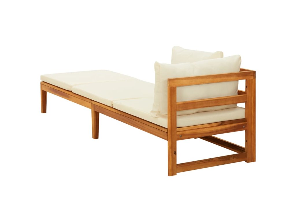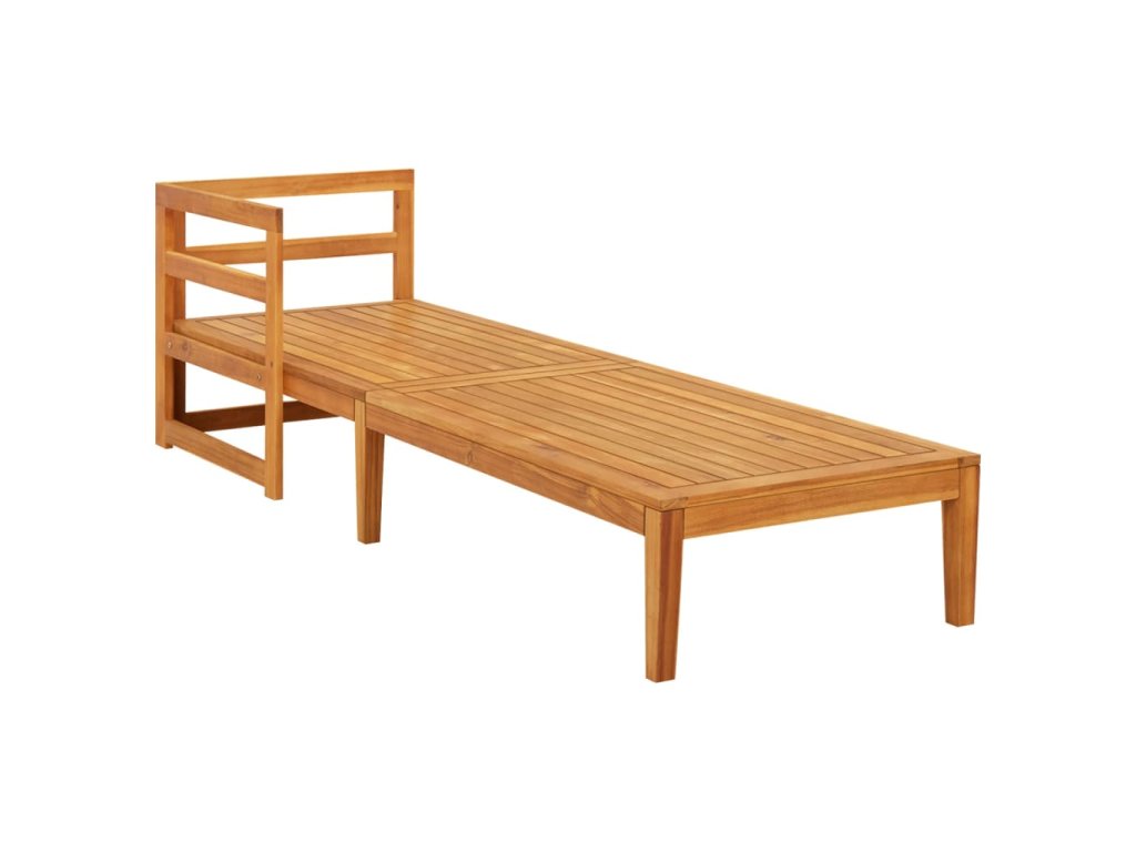 Toto záhradné ležadlo je vyrobené z masívneho akáciového dreva, tvrdého dreva s bohatou štruktúrou. Toto krásne navrhnuté vonkajšie ležadlo na opaľovanie je stabilné, odolné a pútavé. Vďaka vynikajúcemu remeselnému spracovaniu a krásnej štruktúre dreva sa každý kus mierne líši od ostatných kusov. Pribalená podložka a vankúše poskytnú dokonalé pohodlie pri odpočinku. Opierka rúk sa dá namontovať na ľavú aj pravú stranu.