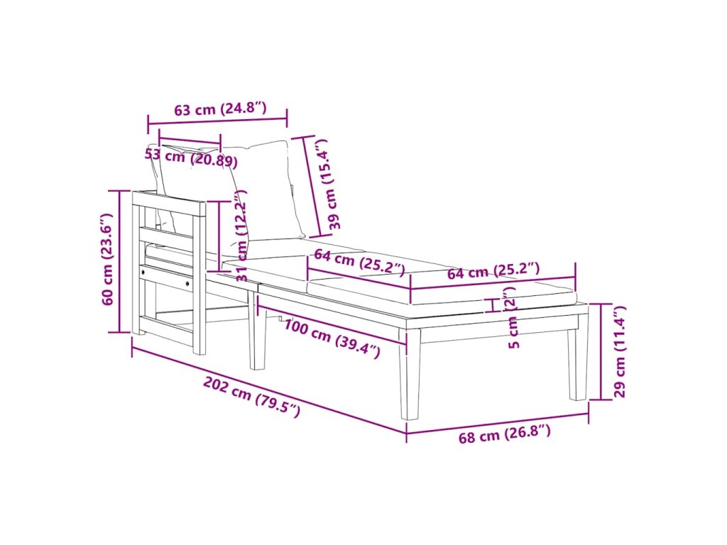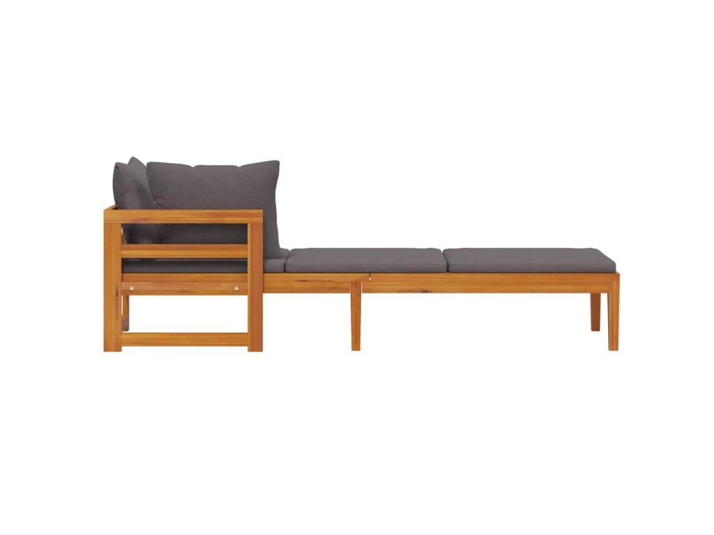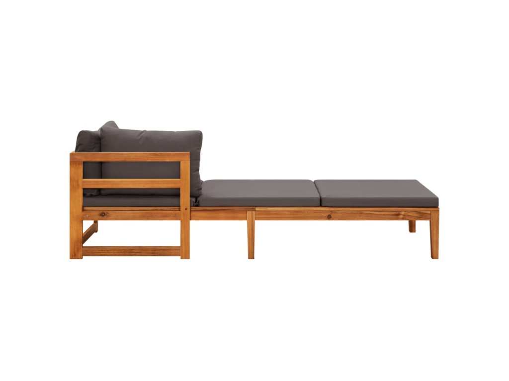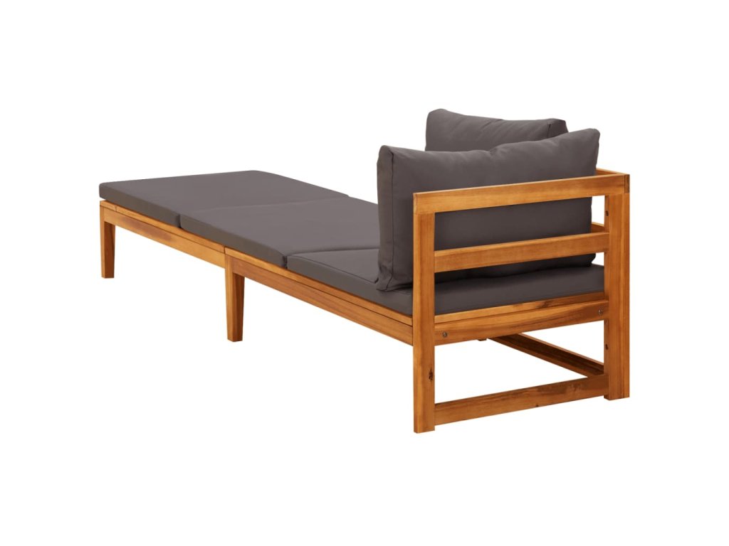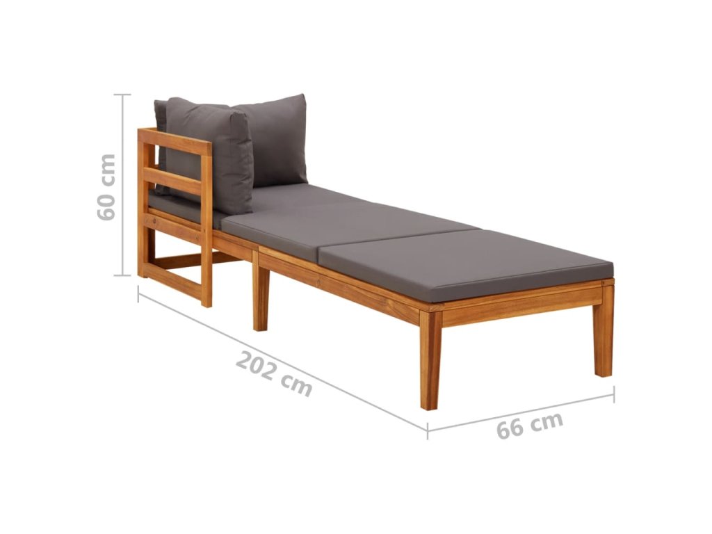 Toto záhradné ležadlo je vyrobené z masívneho akáciového dreva, tvrdého dreva s bohatou štruktúrou. Toto krásne navrhnuté vonkajšie ležadlo na opaľovanie je stabilné, odolné a pútavé. Vďaka vynikajúcemu remeselnému spracovaniu a krásnej štruktúre dreva sa každý kus mierne líši od ostatných kusov. Pribalená podložka a vankúše poskytnú dokonalé pohodlie pri odpočinku. Opierka rúk sa dá namontovať na ľavú aj pravú stranu.