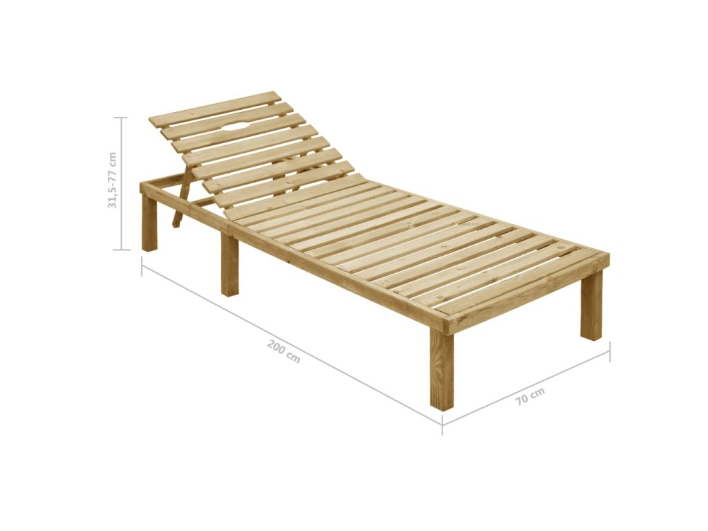 Lehátko je vyrobené z impregnovaného borovicového dreva, je odolné voči poveternostným vplyvom, veľmi trvácne a ľahko sa čistí vlhkou handričkou. Operadlo je nastaviteľné, aby ste si mohli nájsť tú najpohodlnejšiu polohu. Pribalený vankúš je viac ako len praktickým doplnkom; má aj dekoratívnu funkciu.