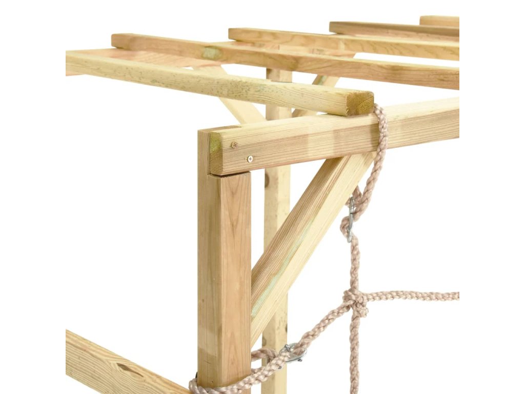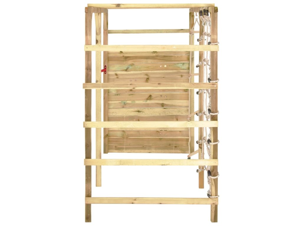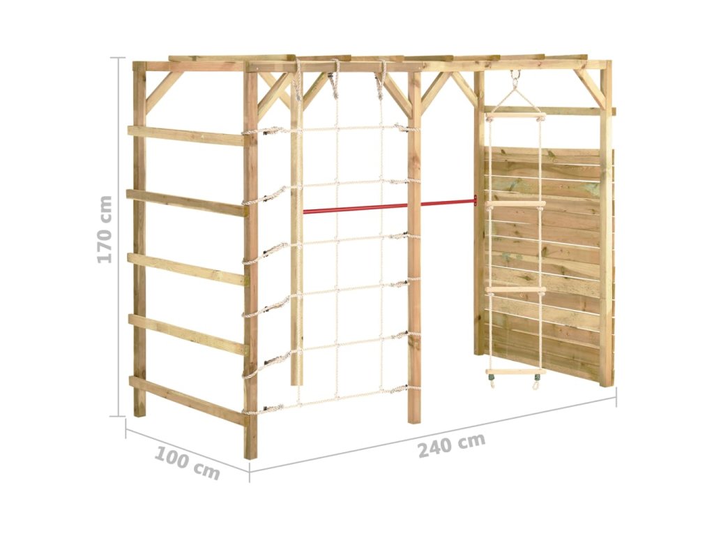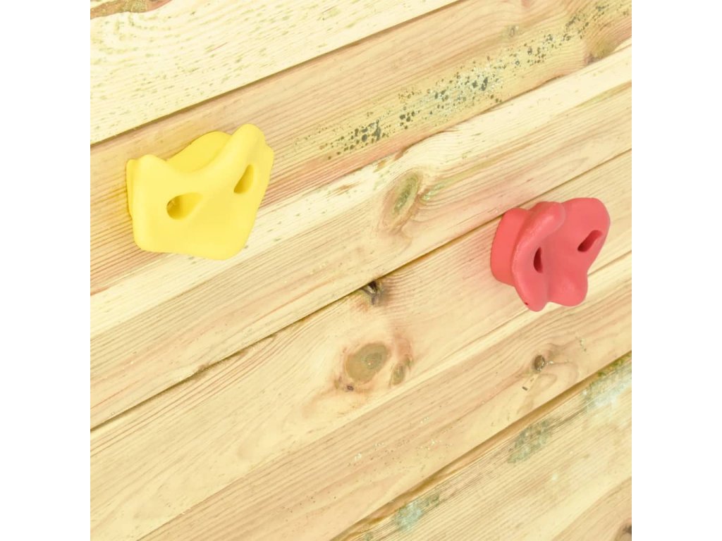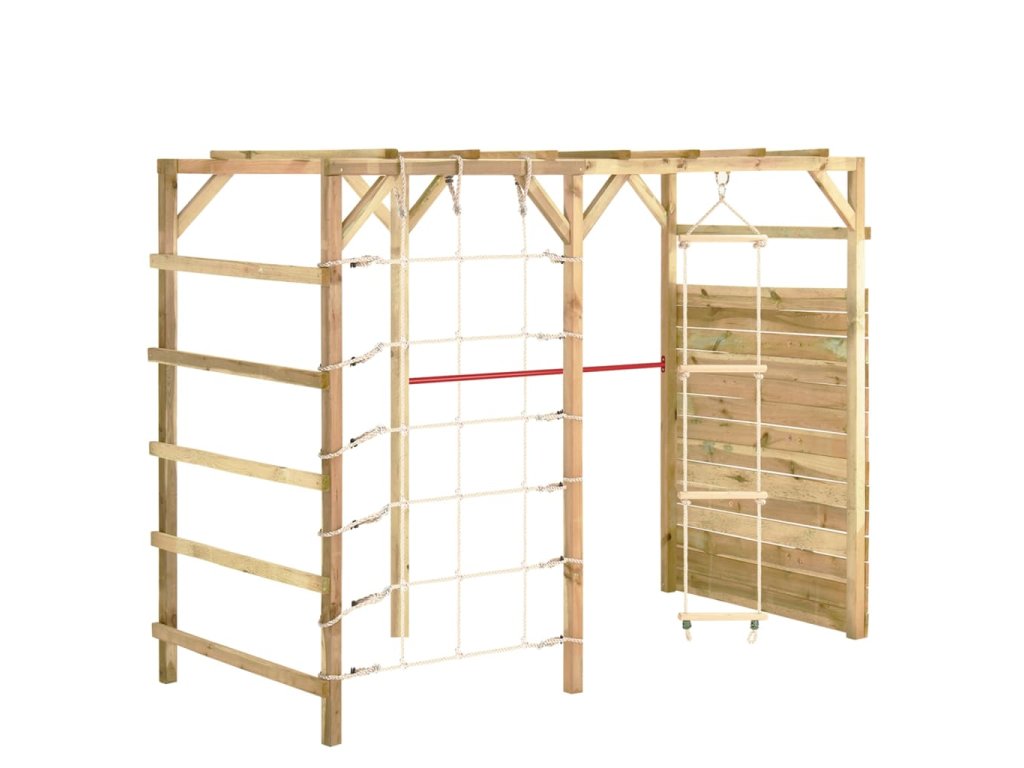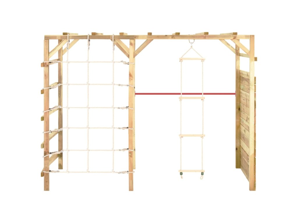 Táto vonkajšia súprava obsahuje 5-stupňový rebrík, horolezeckú stenu s kameňmi, sieťovú stenu, povrazový rebrík s drevenými priečkami a gymnastickú kladinu. Lezecký rám je vyrobený z impregnovaného borovicového dreva a ocele, vďaka čomu je trvácny a odolný voči hnilobe. Vaše ratolesti tiež môžu pozvať svojich priateľov, aby sa pripojili k zábave. Môžu liezť hore-dole a tiež postupovať vpred po vodorovných priečkach. Preliezačka poskytuje vašim deťom veľa možností cvičenia, napríklad zhybov, strečingu atď.