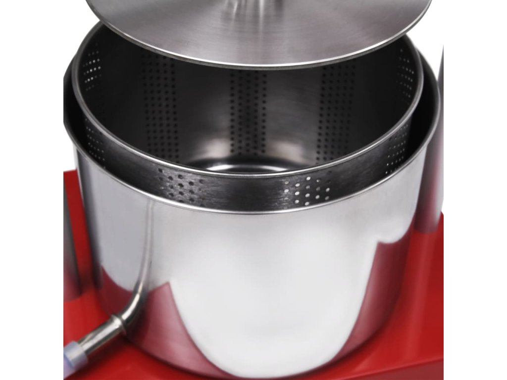 Je navrhnutý pre ľahkú obsluhu jednou osobou pomocou 2-tyčovej otočnej rukoväte. Zeleninu/ovocie vložte do košíka a pomocou pevnej rukoväte ich odšťavte. Dvojité dierované koše sú vyrobené z potravinárskej nehrdzavejúcej ocele, sú antikorózne a odolné. Odpadová rúra je umiestnená v spodnej časti jedného koša, aby mohla extrahovaná šťava pohodlne vytiecť do skladovacej nádoby. S týmto produktom nemusíte na úspešné lisovanie ovocia, bylín alebo iných druhov používať drahé látky alebo iné doplnky.