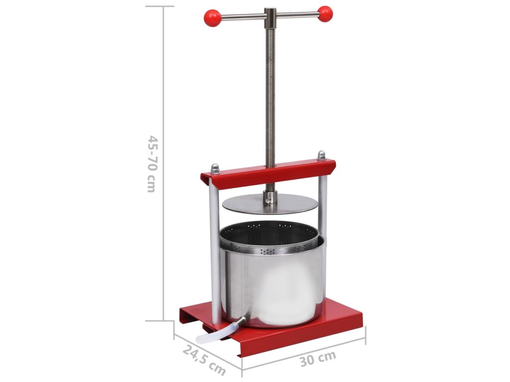 Náš lis na ovocie s objemom 6 l je určený na jednoduché lisovanie ovocia, zeleniny alebo bylín. Je vynikajúci na odšťavovanie hrozna, bobúľ, olív, paradajok atď.