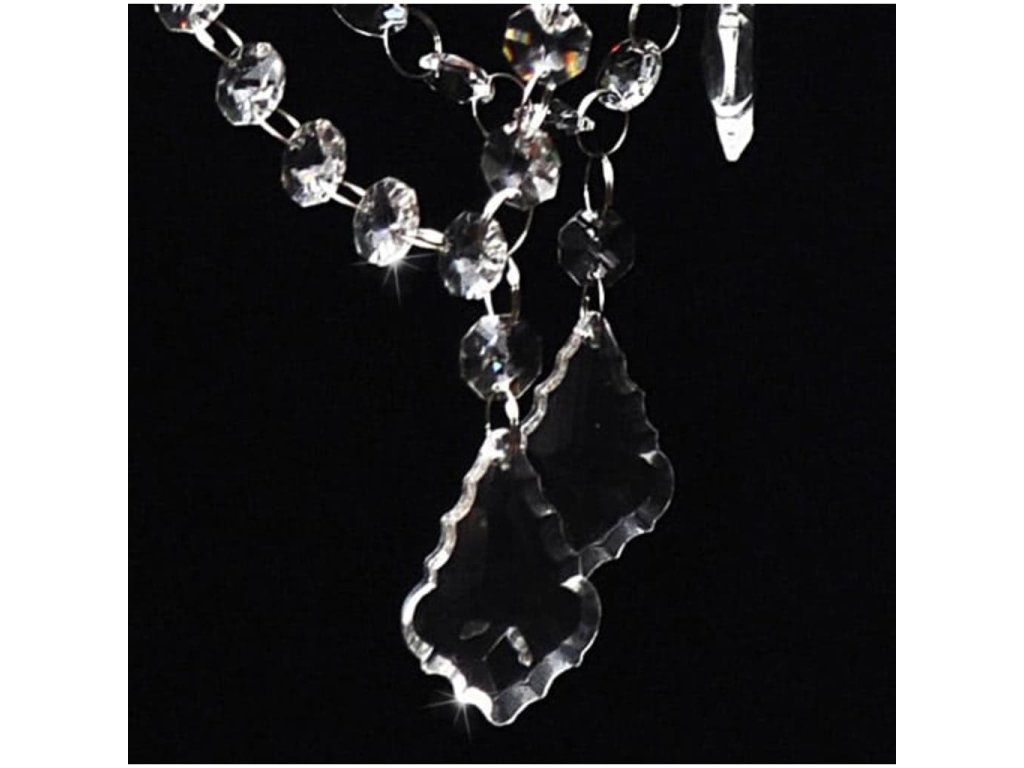 - Materiál: Kovový rám + sklenené krištáliky