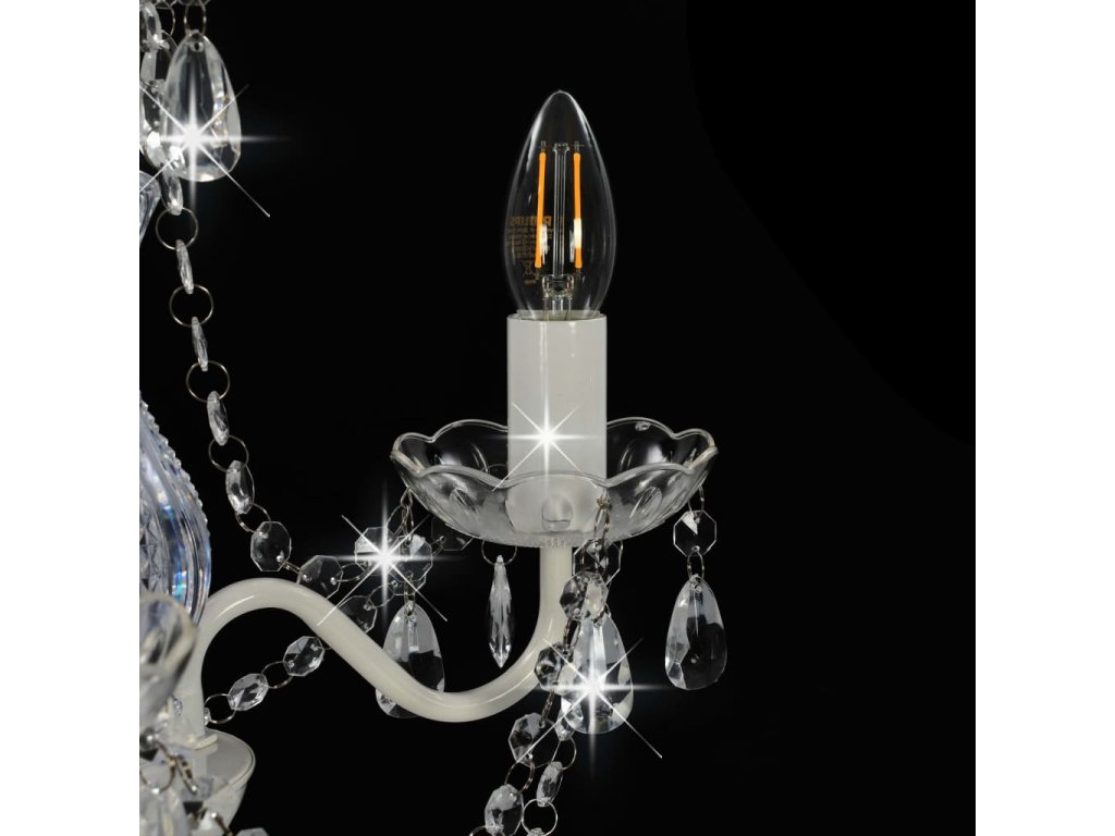 - Farba: Biela (základňa lampy) + priehľadná (krištáliky)