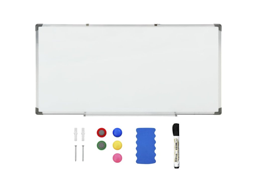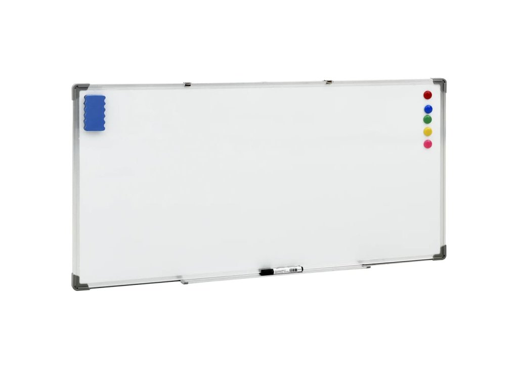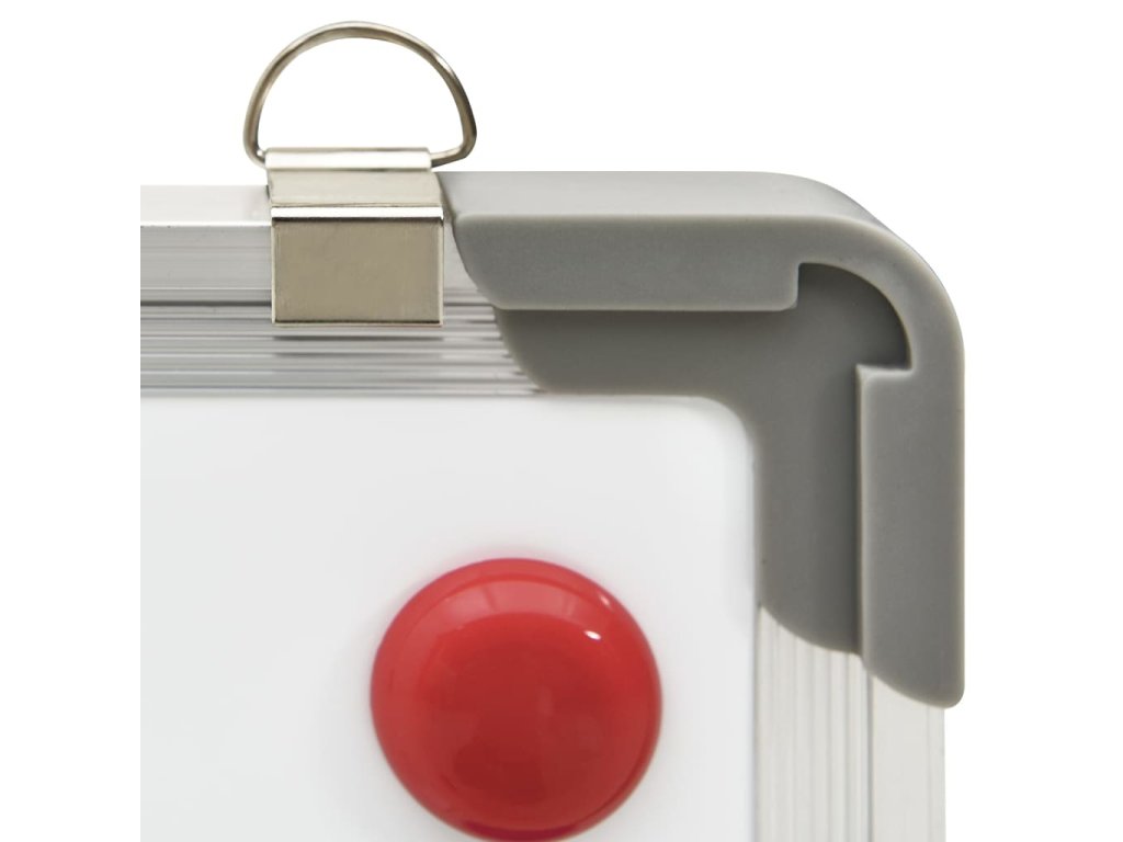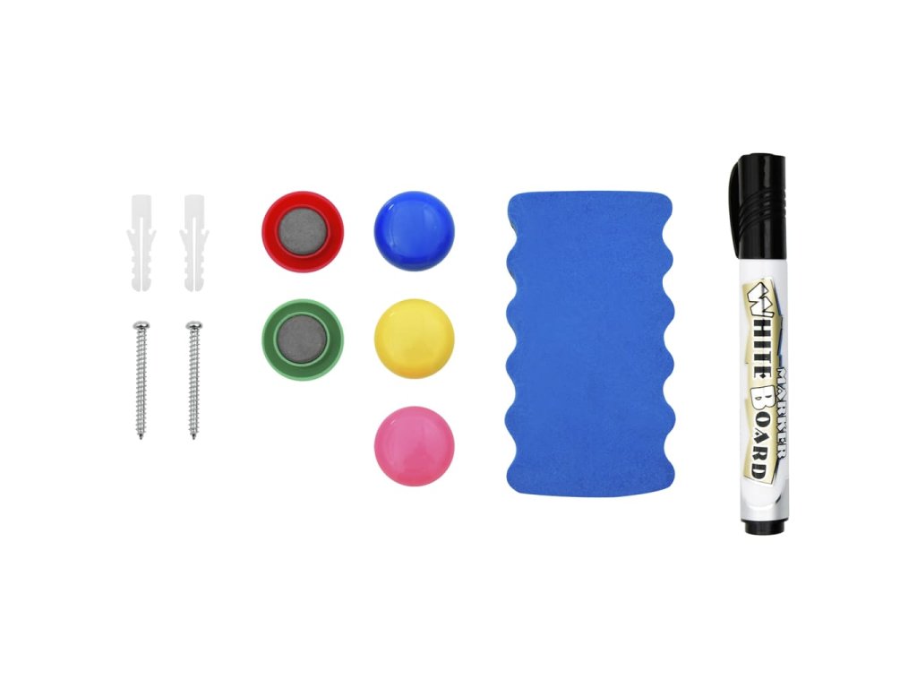 Tabuľa má lakovaný oceľový povrch, na ktorý možno ľahko písať popisovačom a opäť ju vyčistiť hubkou. Hliníkový rám s chráničmi na rohoch je robustný a má dlhú životnosť. Položku môžete zavesiť s dodanými magnetmi. Háčiky a klince pre ľahkú montáž na stenu sú súčasťou balenia.