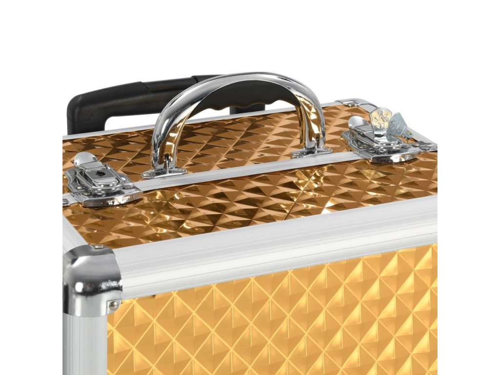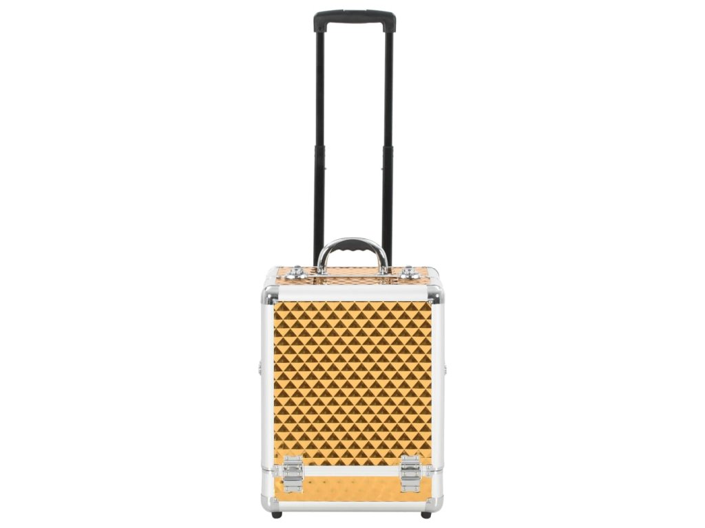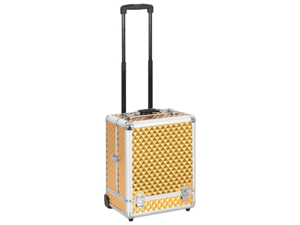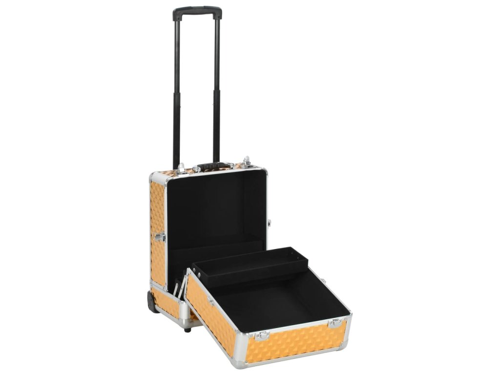 Tento kozmetický kufrík vyrobený z dreva, ABS fólie a z hliníka vám umožní prakticky uložiť vašu kozmetiku a udržiavať ju v perfektnom stave. Tento kozmetický kufrík obsahuje 1 veľký horný priečinok a 6 výsuvných podnosov, čo poskytuje dostatok úložného priestoru pre vaše kozmetické a skrášľovacie produkty. Má 2 odnímateľné kolieska, vďaka ktorým si môžete vziať kufrík kamkoľvek so sebou.