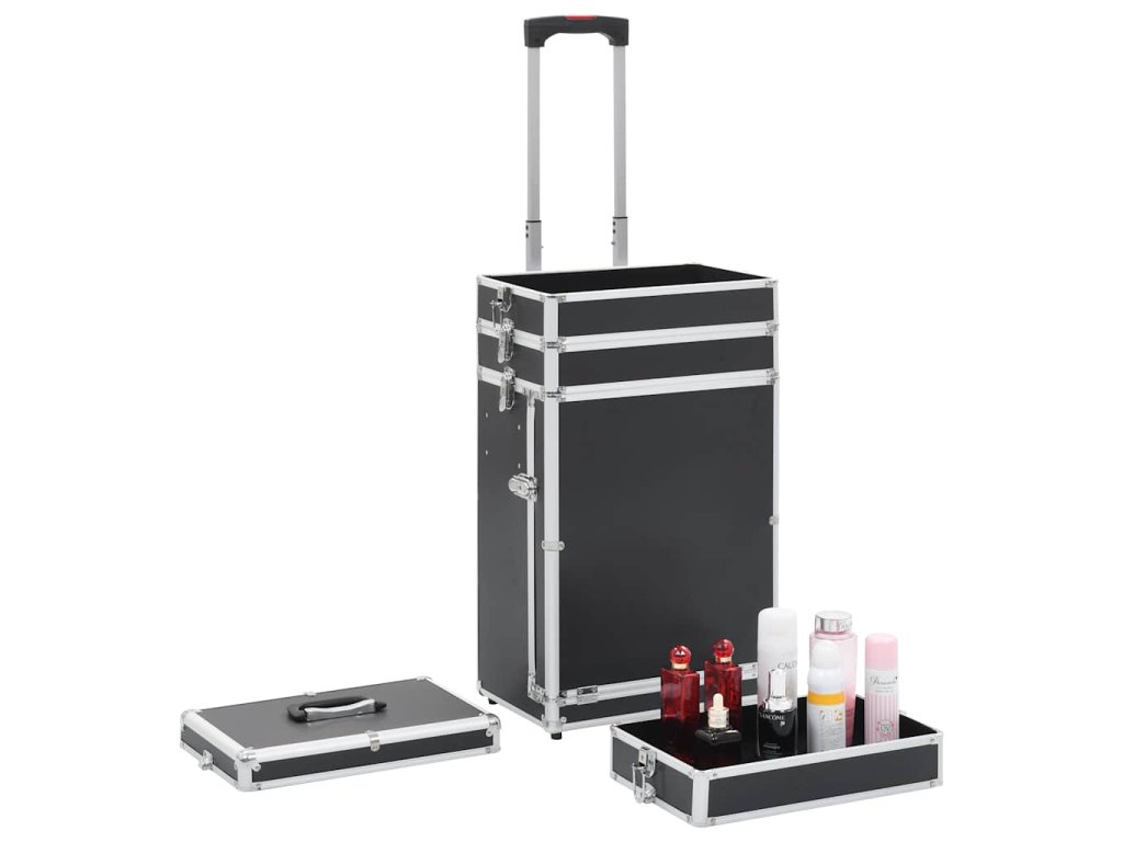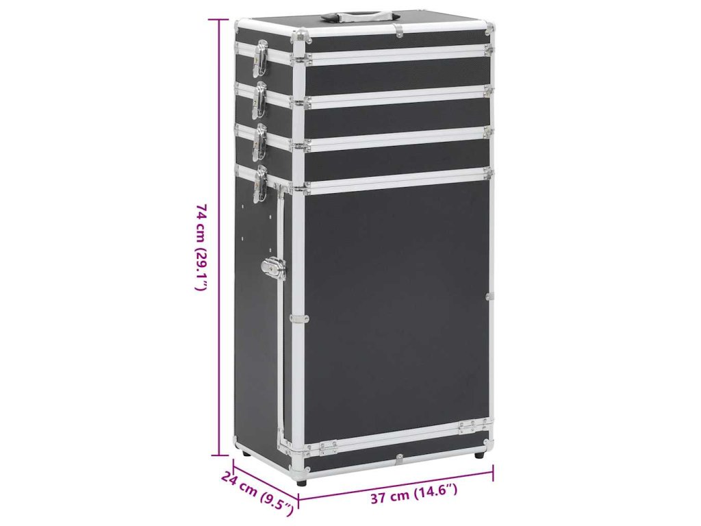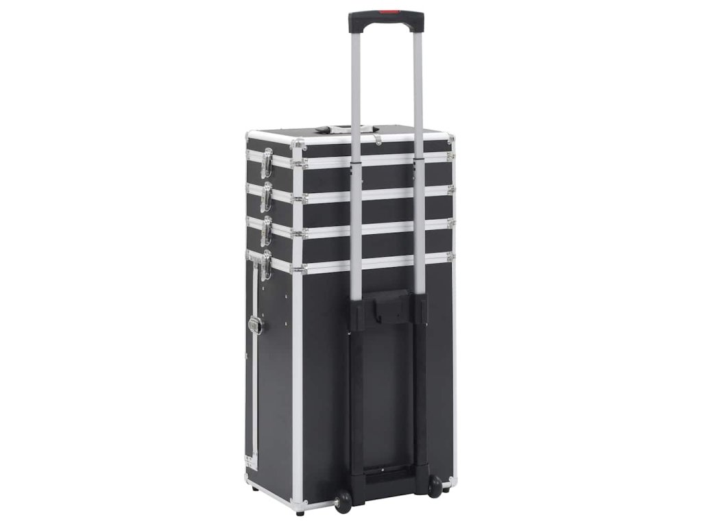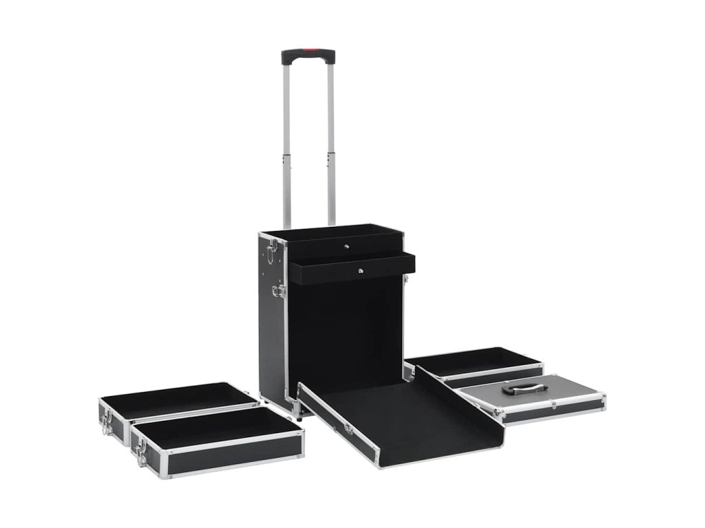 Tento kozmetický kufrík vyrobený z dreva, ABS fólie a hliníka vám umožní prakticky uložiť vašu kozmetiku a udržiavať ju v perfektnom stave. Tento kozmetický kufrík obsahuje 4 vrstvy a 1 zásuvku, čo poskytuje dostatok úložného priestoru pre vaše kozmetické a skrášľovacie produkty. Má 4 odnímateľné kolieska, vďaka ktorým si môžete vziať kufrík kamkoľvek so sebou.