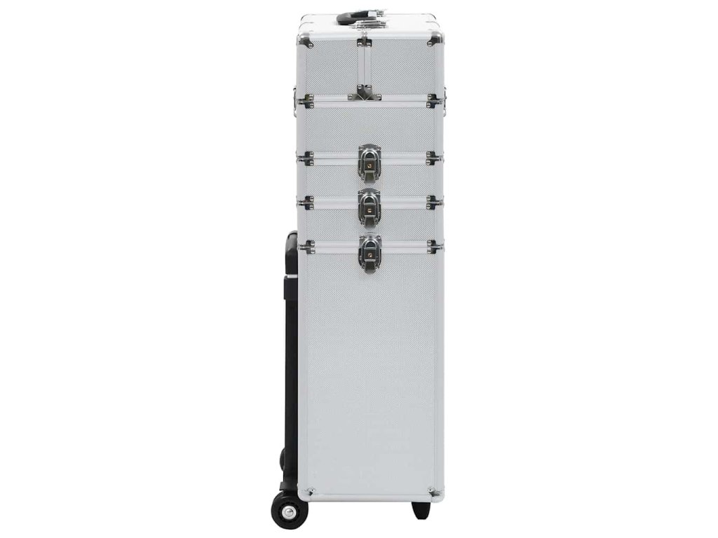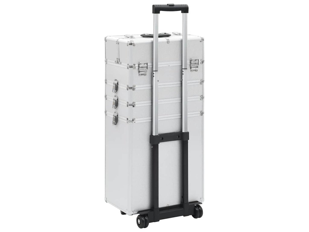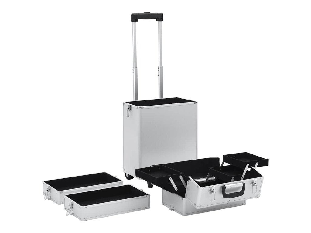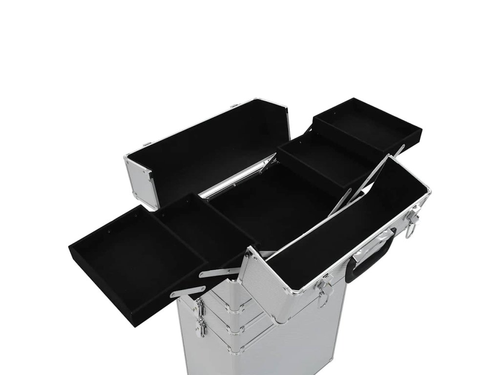 Tento kozmetický kufrík vyrobený z dreva, ABS fólie a z hliníka vám umožní prakticky uložiť vašu kozmetiku a udržiavať ju v perfektnom stave. Tento kozmetický kufrík obsahuje 4 vrstvy a výsuvné podnosy vo vrchnej časti, čo poskytuje dostatok úložného priestoru pre vaše kozmetické a skrášľovacie produkty. Má 4 odnímateľné kolieska, vďaka ktorým si môžete vziať kufrík kamkoľvek so sebou.