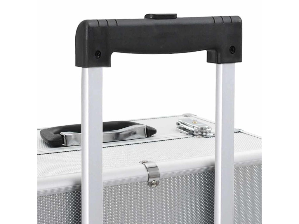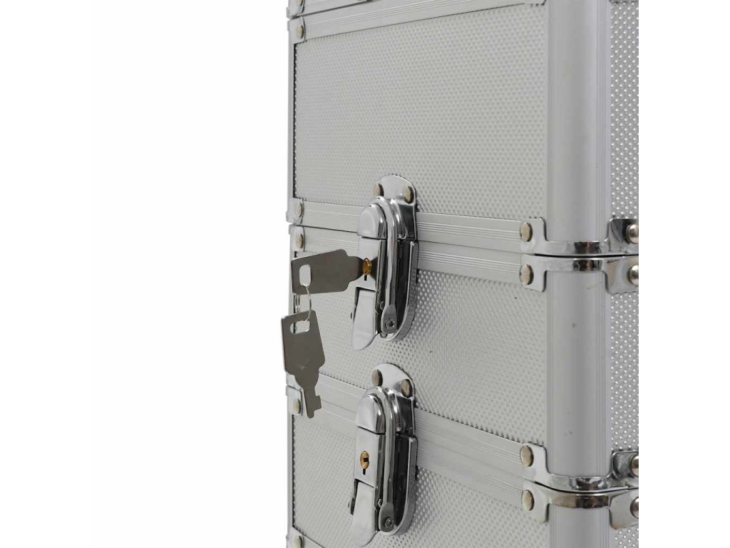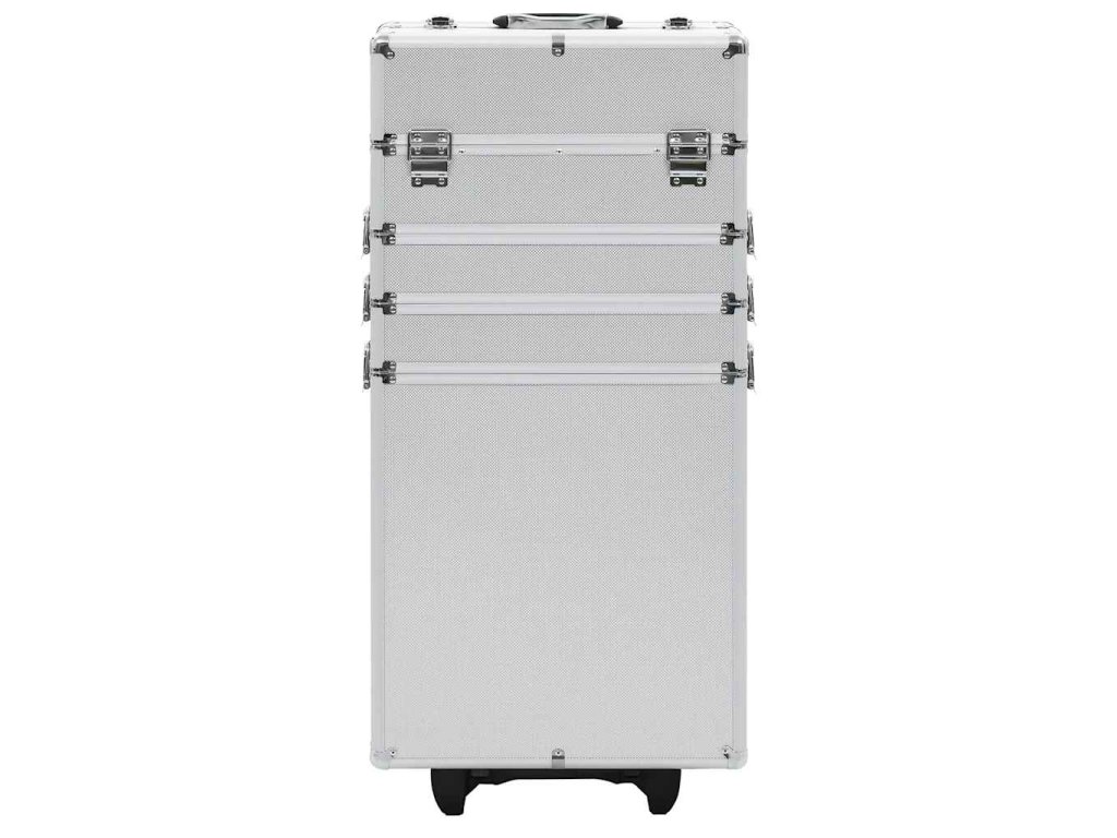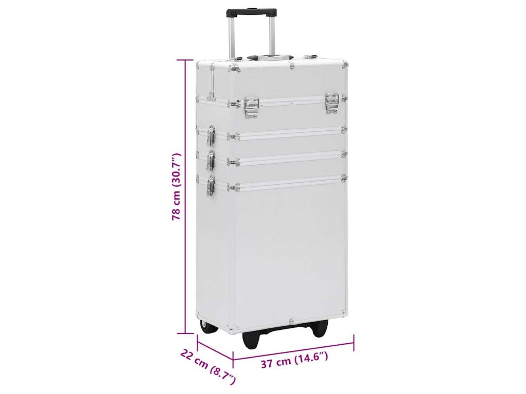 Tento kozmetický kufrík vyrobený z dreva, ABS fólie a z hliníka vám umožní prakticky uložiť vašu kozmetiku a udržiavať ju v perfektnom stave. Tento kozmetický kufrík obsahuje 4 vrstvy a výsuvné podnosy vo vrchnej časti, čo poskytuje dostatok úložného priestoru pre vaše kozmetické a skrášľovacie produkty. Má 4 odnímateľné kolieska, vďaka ktorým si môžete vziať kufrík kamkoľvek so sebou.
