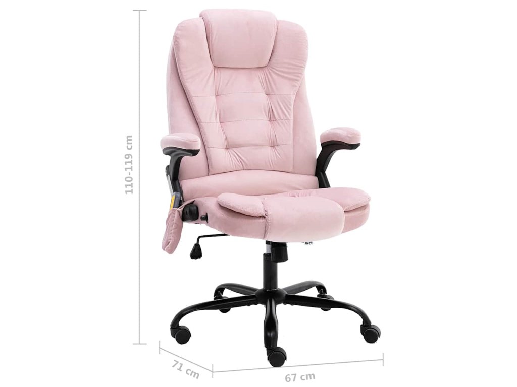 Kancelárske kreslo má dizajn s vysokým operadlom, zaoblenými opierkami a sedadlom s hustou výplňou, a tak poskytuje potrebné pohodlie aj pri dlhšej práci. Výškovo nastaviteľný dizajn vám umožní prispôsobiť výšku sedadla podľa výšky stola a dosiahnuť tak väčšie pohodlie a zdravú polohu chrbtice. Sklápacie kreslo je vybavené nylónovými kolieskami, takže ho môžete jednoducho premiestniť. Kreslo má 4 masážne body v oblasti chrbta a 2 masážne body na sedadle. Okrem toho ponúka aj funkciu vyhrievania v oblasti pásu.