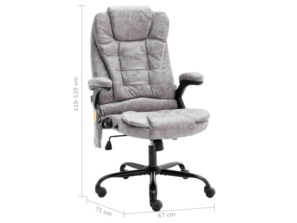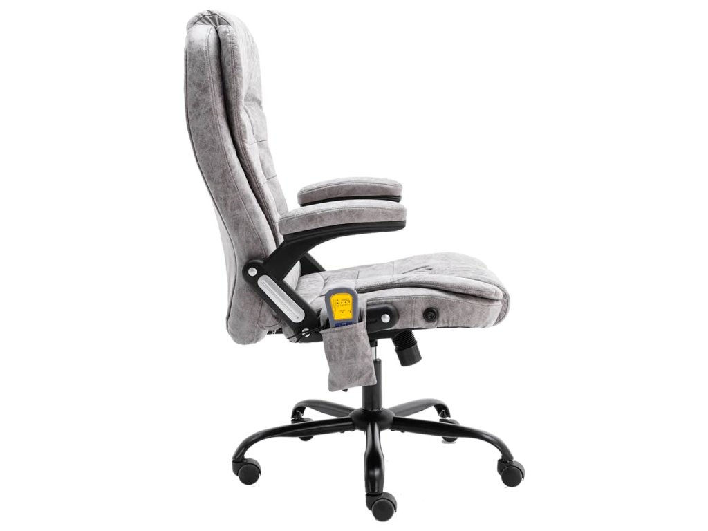 Kancelárske kreslo má dizajn s vysokým operadlom, zaoblenými opierkami a sedadlom s hustou výplňou, a tak poskytuje potrebné pohodlie aj pri dlhšej práci. Výškovo nastaviteľný dizajn vám umožní prispôsobiť výšku sedadla podľa výšky stola a dosiahnuť tak väčšie pohodlie a zdravú polohu chrbtice. Sklápacie kreslo je vybavené nylónovými kolieskami, takže ho môžete jednoducho premiestniť. Kreslo má 4 masážne body v oblasti chrbta a 2 masážne body na sedadle. Okrem toho ponúka aj funkciu vyhrievania v oblasti pásu.