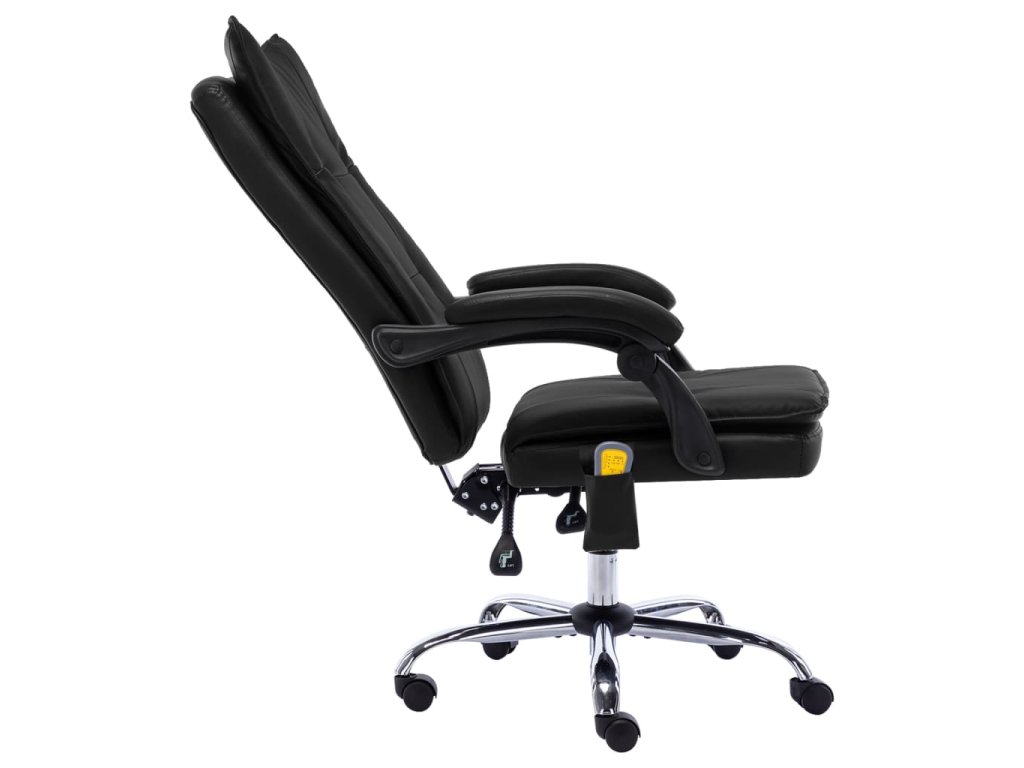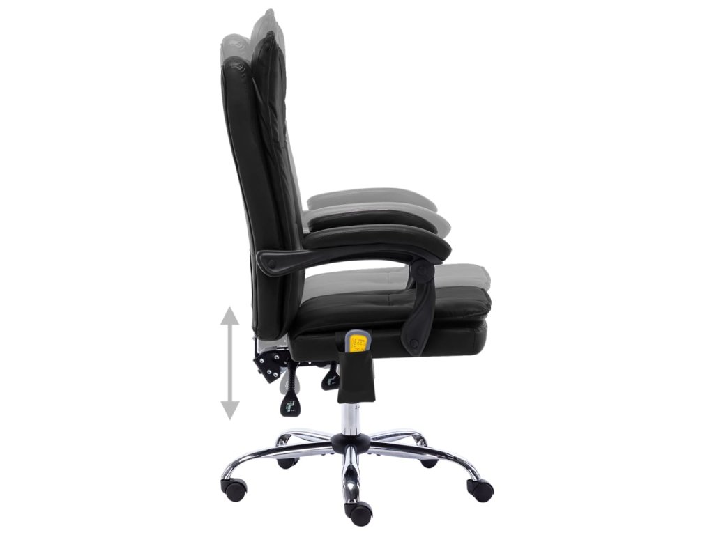Má vysoké operadlo, zakrivenú opierku rúk a husto polstrované sedadlo, ktoré poskytuje pohodlie pri dlhej práci. Výškovo nastaviteľná konštrukcia umožňuje prispôsobiť stoličku k výške stola a dosiahnuť dlhšie pohodlie a zdravé vyrovnanie chrbtice. Toto polohovateľné kreslo je vybavené nylonovými kolieskami, takže ho môžete ľahko premiestňovať. Môže sa nakláňať v rozsahu 95° až 150°, aby vám ponúklo požadovanú polohu na relaxáciu. Toto počítačové kreslo má 4 masážne body pre chrbát a 2 masážne body na sedadle. Je tiež vybavené funkciou vyhrievania pre váš pás.