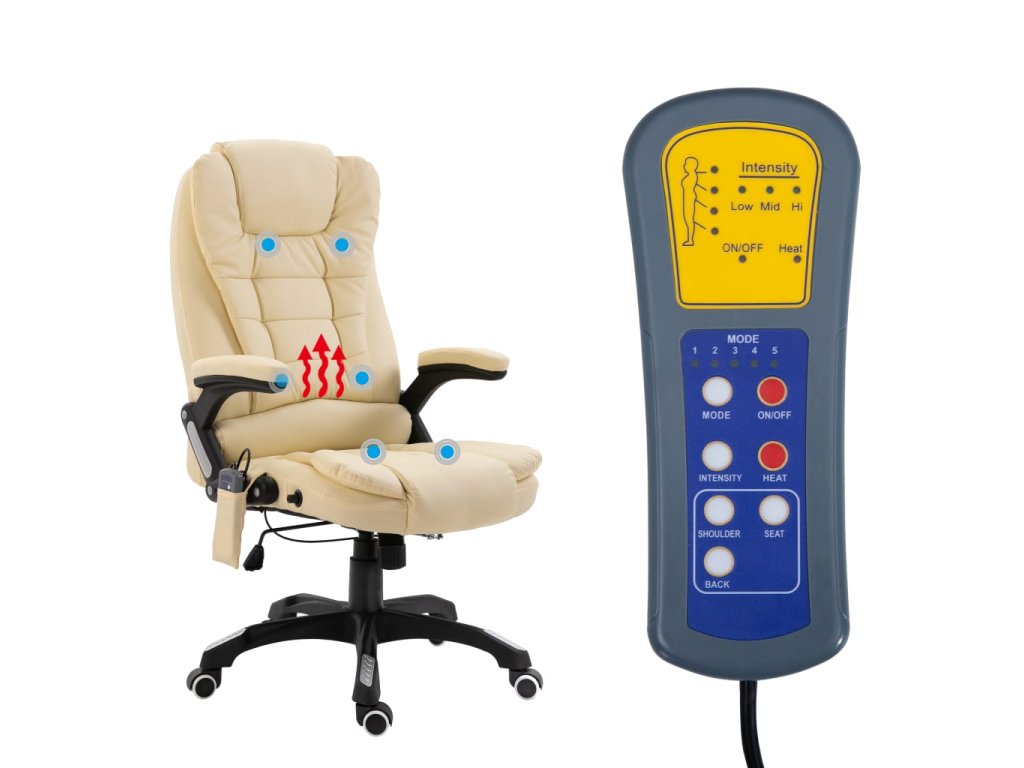 Naviac, kancelárske kreslo ponúka aj masážnu a vyhrievaciu funkciu. Vďaka 6 masážnym bodom v oblasti drieku s rôznymi intenzitami a priloženému diaľkovému ovládaniu vám toto kreslo určite prinesie maximálne pohodlie.