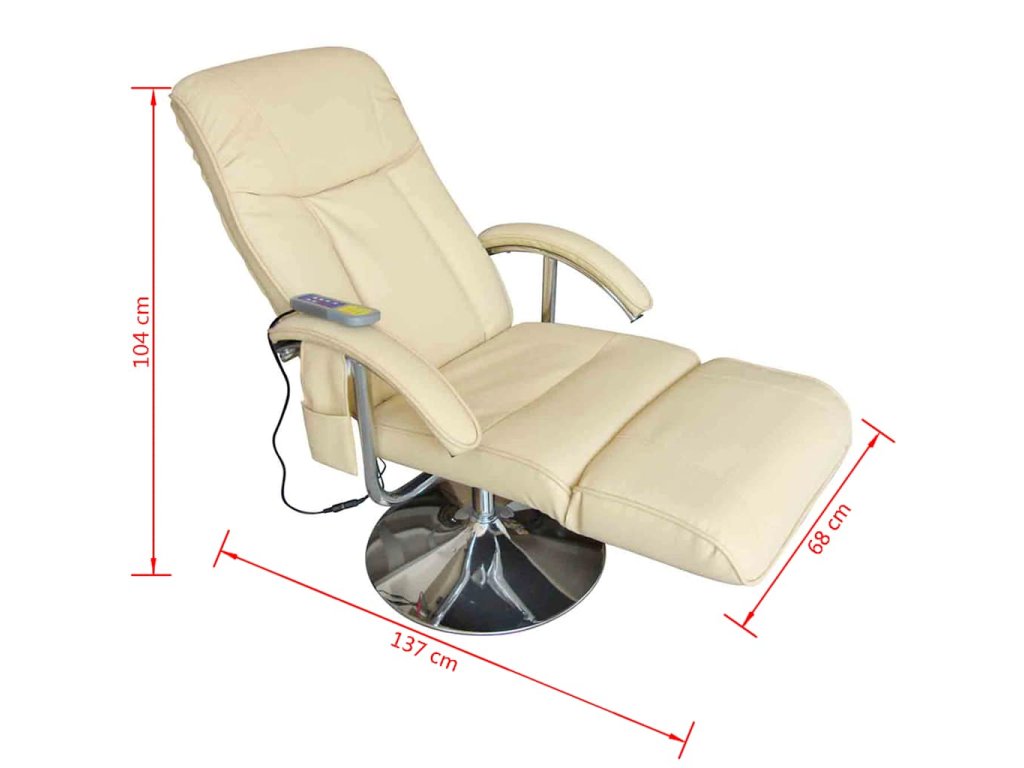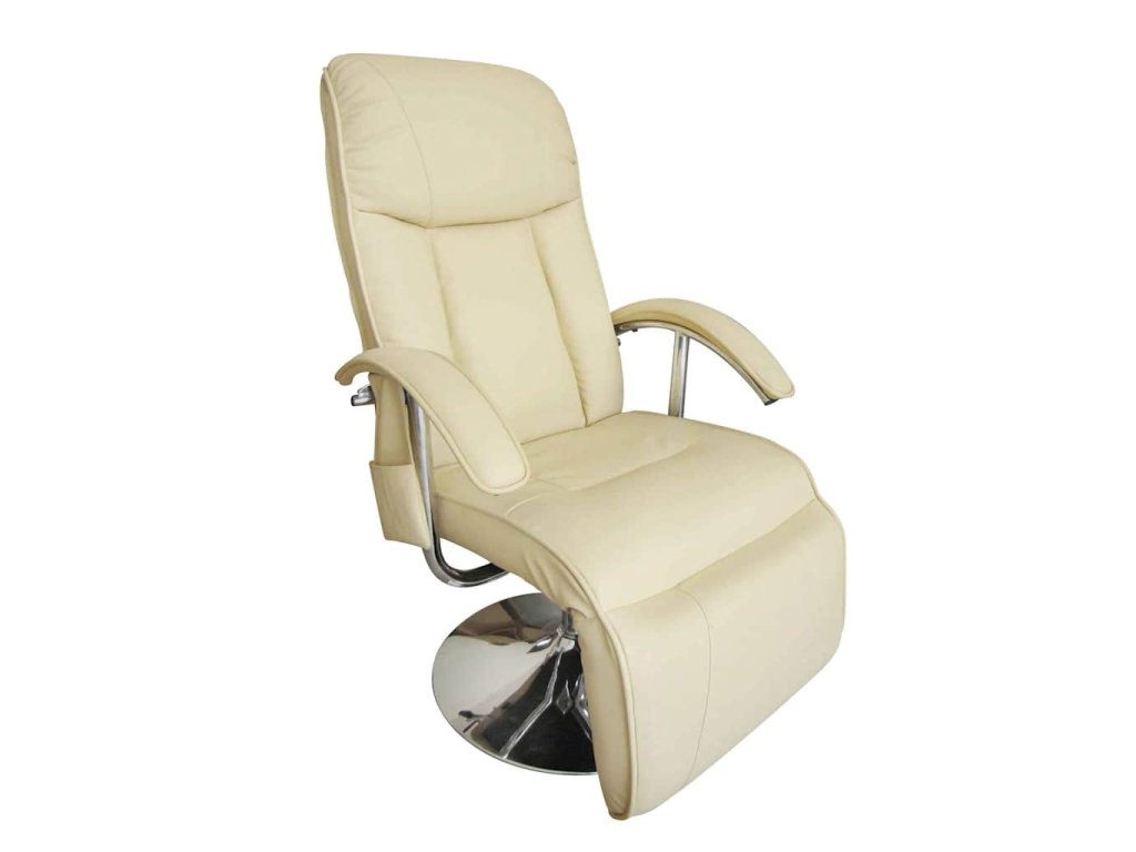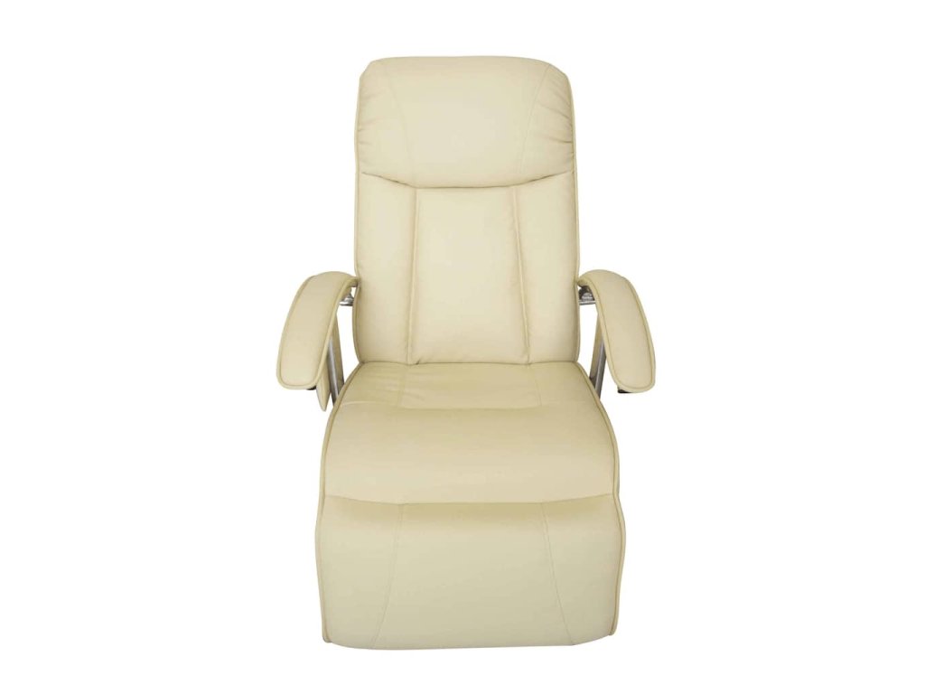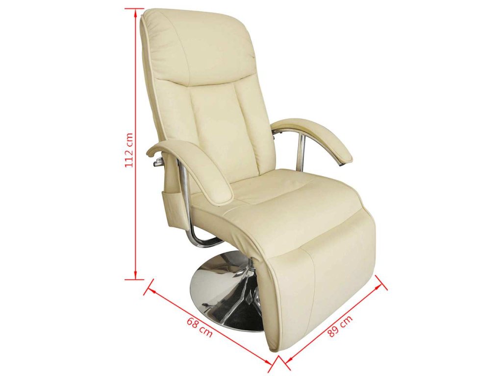 Kreslo má poťah z krémovo bielej umelej kože, ktorá sa dá ľahko očistiť. Operadlo a opierku na nohy môžete synchrónne nastavovať.