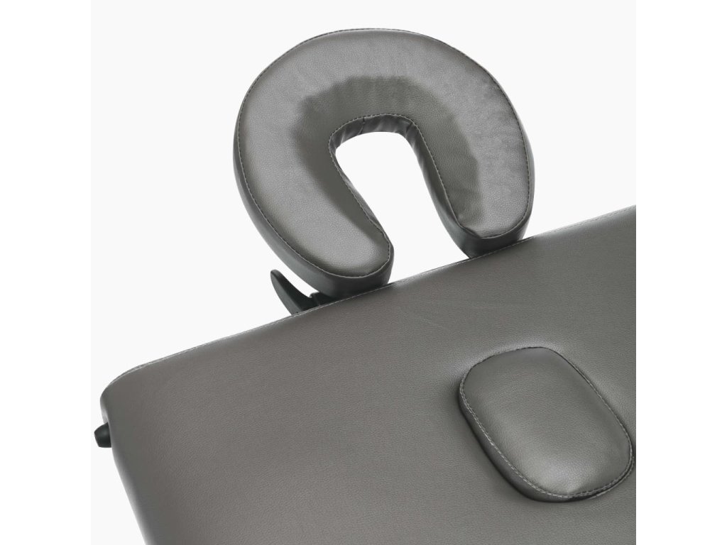 Podložka je vyčalúnená molitanom s vysokou hustotou a je veľmi pohodlná a odolná voči znečisteniu dezinfekčnými prostriedkami a masážnymi olejmi. Opierky na hlavu a ruky, ako aj výška stola, sa dajú nastaviť, vďaka čomu sa zákazníkovi bude pohodlne ležať a masér si bude môcť zvoliť vhodnú pracovnú výšku.