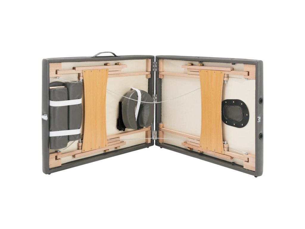 Tento skladací masážny stôl s dvoma zónami má drevený rám a je vhodný pre amatérskych aj profesionálnych masérov.