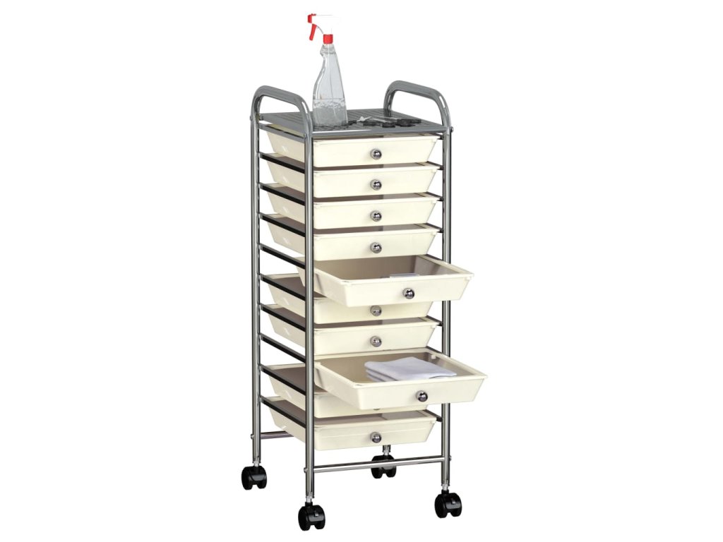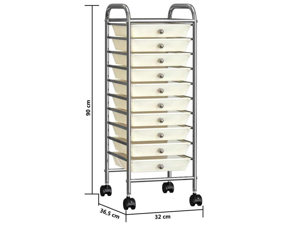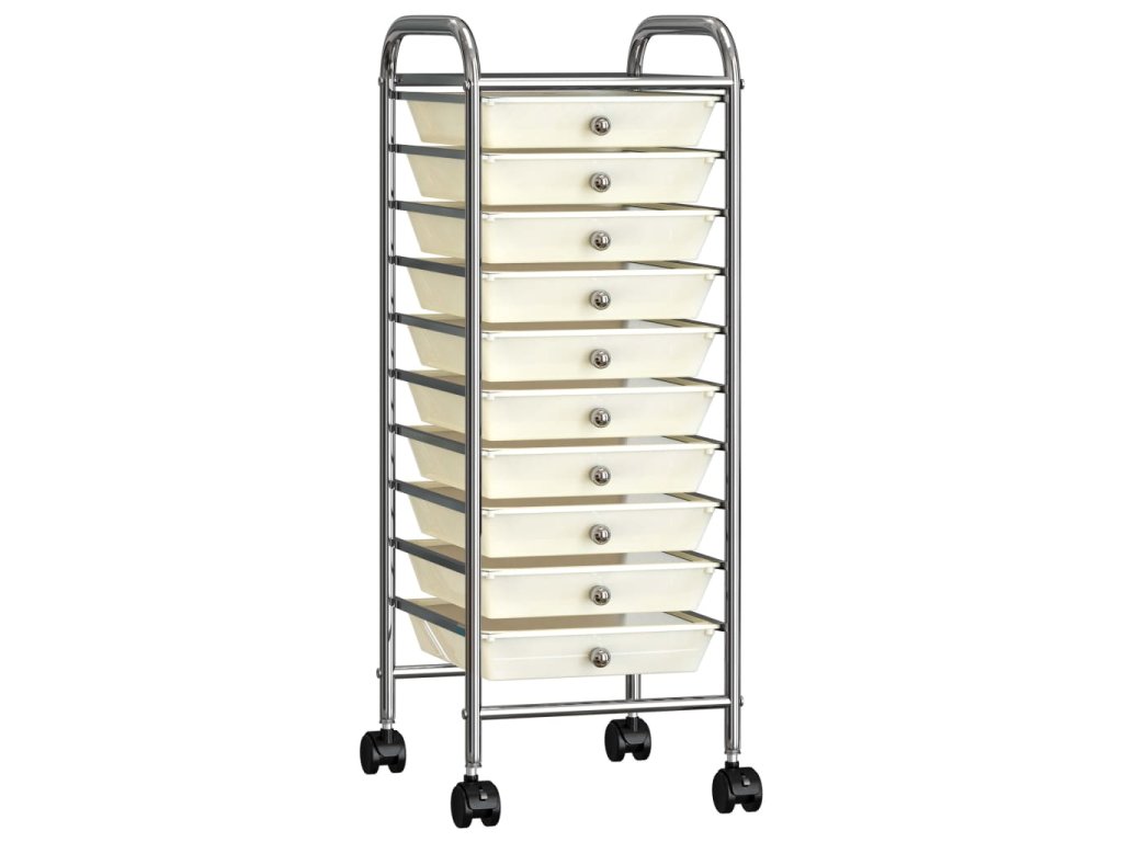 Chrómovaný rám poskytuje pevnú a odolnú podporu. 10 odnímateľných košov vytvára dostatočný úložný priestor pre vaše veci. Koše sa jednoducho vyberajú a čistia. 4 otočné kolesá uľahčujú ľahkú prepravu a skladovanie.