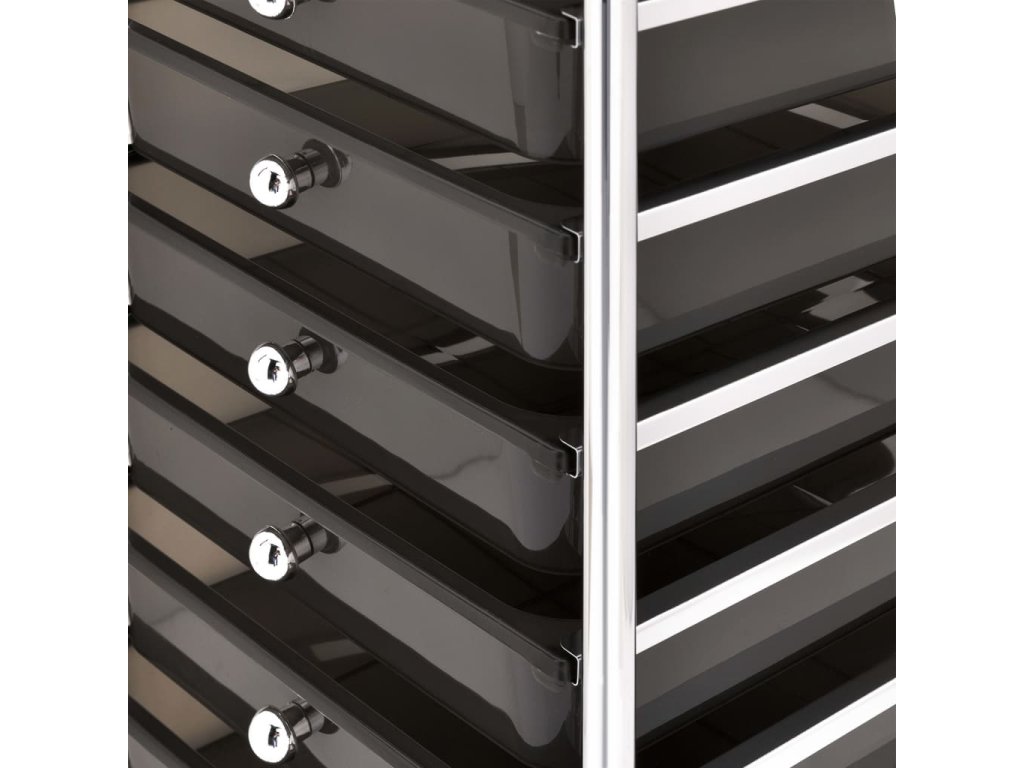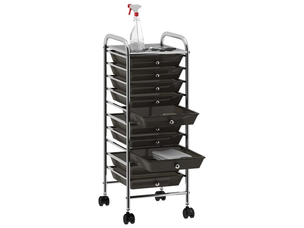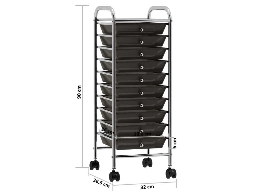 Chrómovaný rám poskytuje pevnú a odolnú podporu. 10 odnímateľných košov vytvára dostatočný úložný priestor pre vaše veci. Koše sa jednoducho vyberajú a čistia. 4 otočné kolesá uľahčujú ľahkú prepravu a skladovanie.
