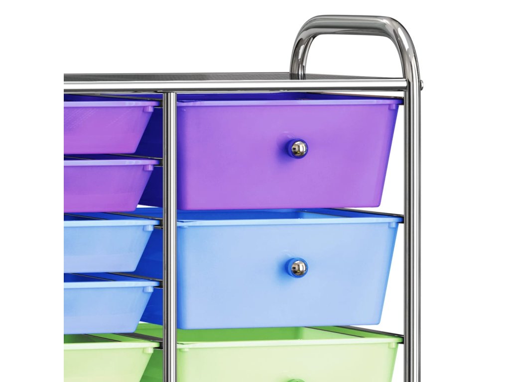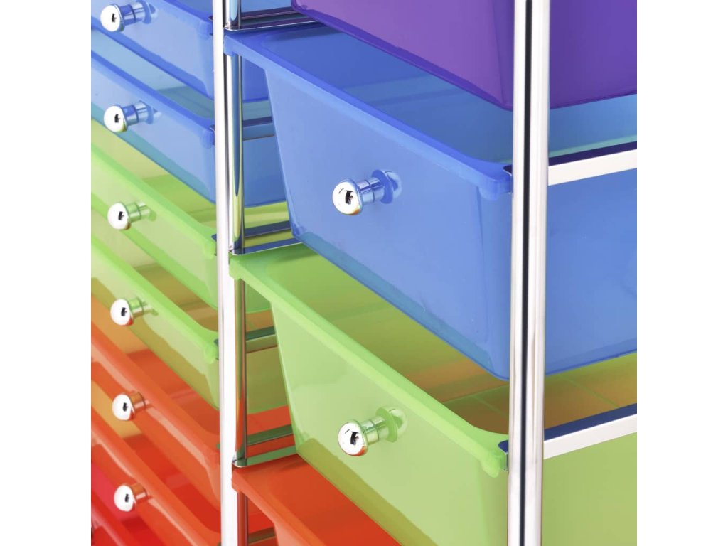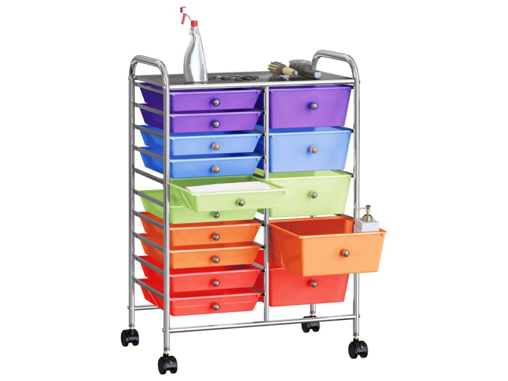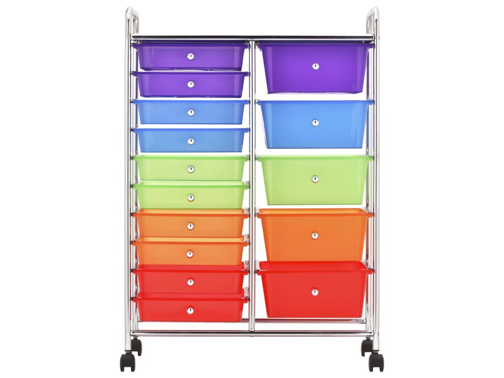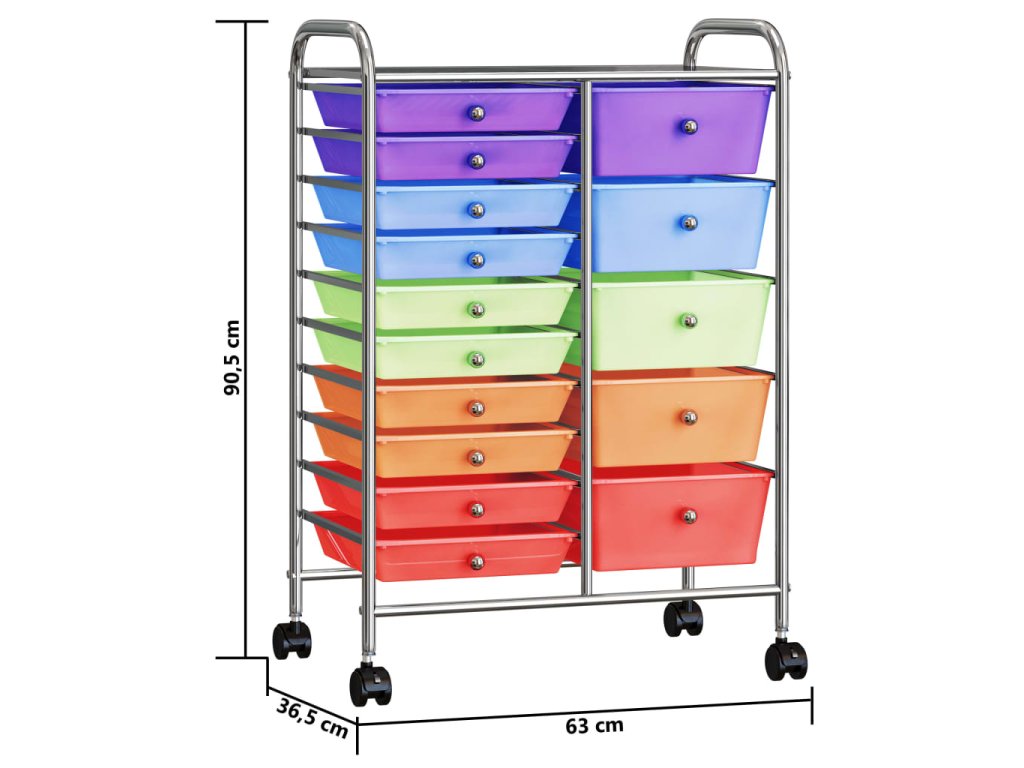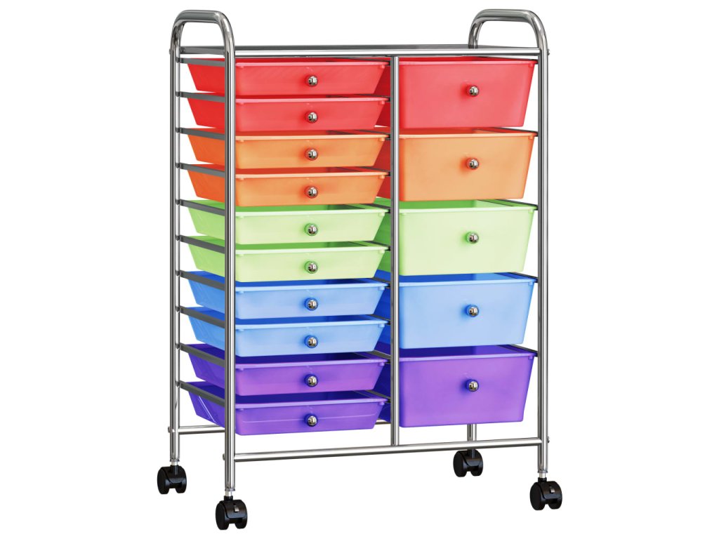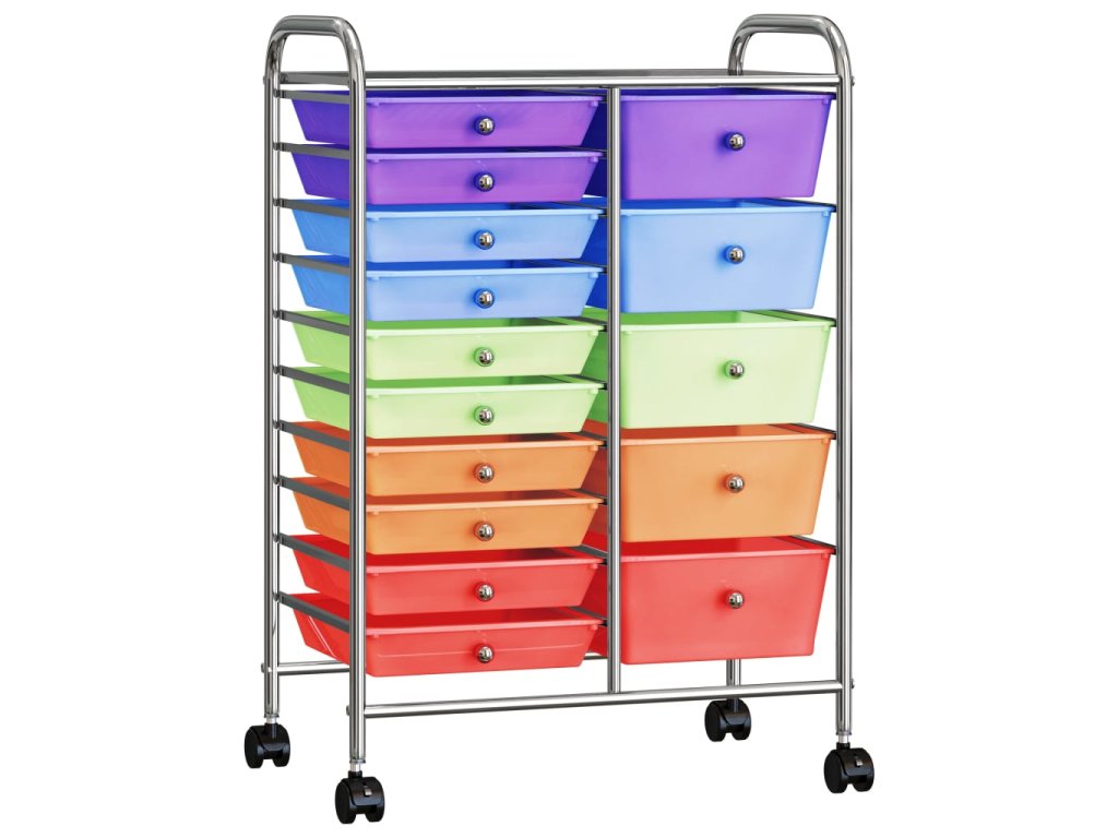 Chrómovaný rám poskytuje pevnú a odolnú podporu. 15 odnímateľných košov vytvára dostatočný úložný priestor pre vaše veci. Koše sa jednoducho vyberajú a čistia. 4 otočné kolesá uľahčujú ľahkú prepravu a skladovanie.