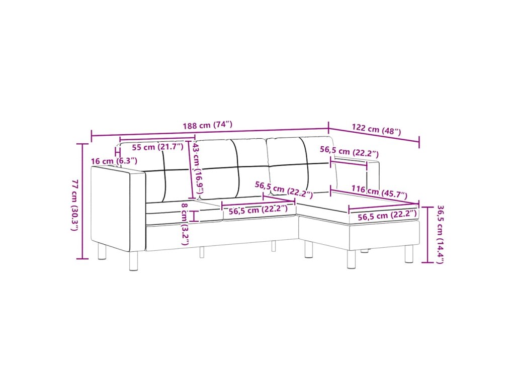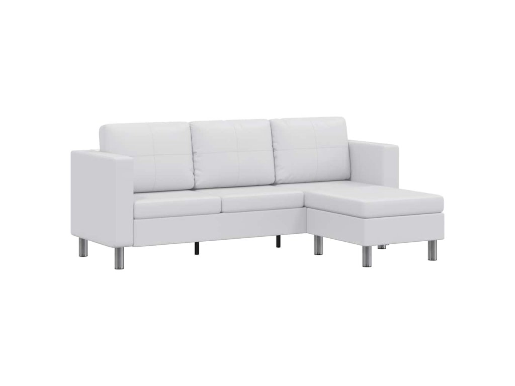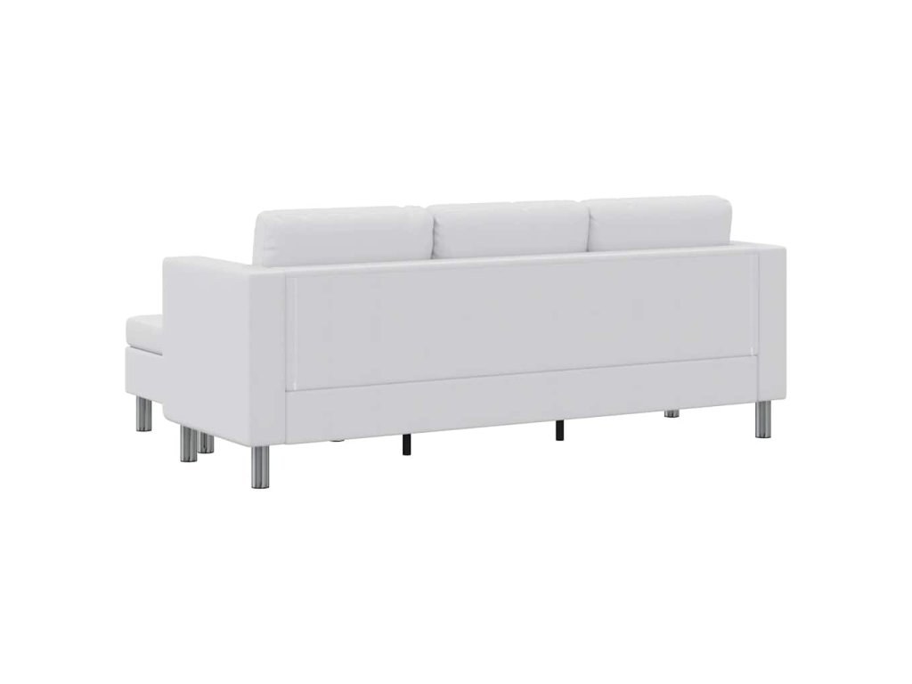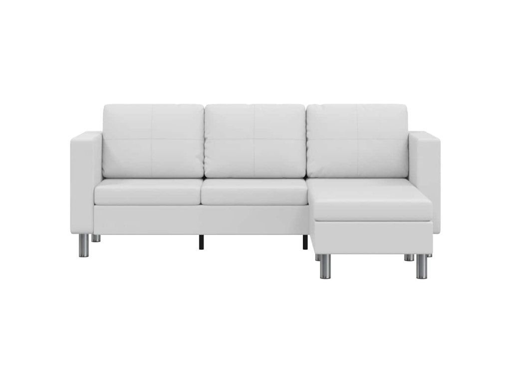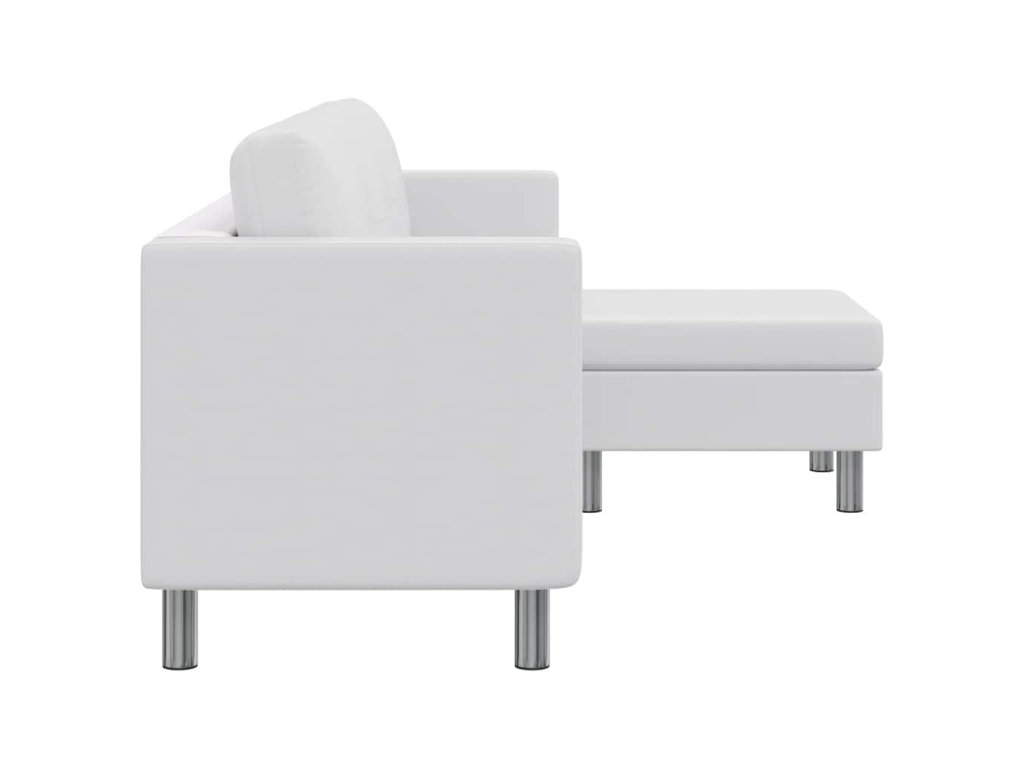 Pohovka má široké sedadlá a nahusto čalúnené podložky pre optimálny komfort pri sedení. Súprava pohoviek je potiahnutá lesklou a trvácnou umelou kožou, ktorá sa dá ľahko očistiť. Rohové časti pohovky majú pevnú konštrukciu a stoja na odolných, pochrómovaných železných nohách. Všestranná pohovka zahŕňa leňošku, ktorá sa dá umiestniť na obidve strany dvojmiestneho kresla, takže si môžete miestnosť zariadiť rôznymi spôsobmi.