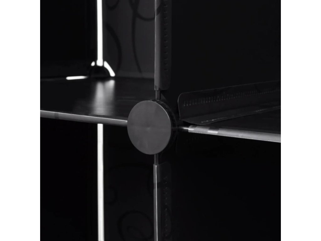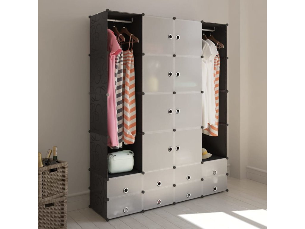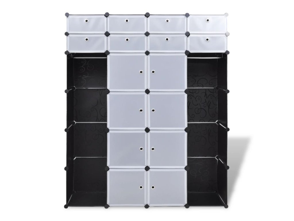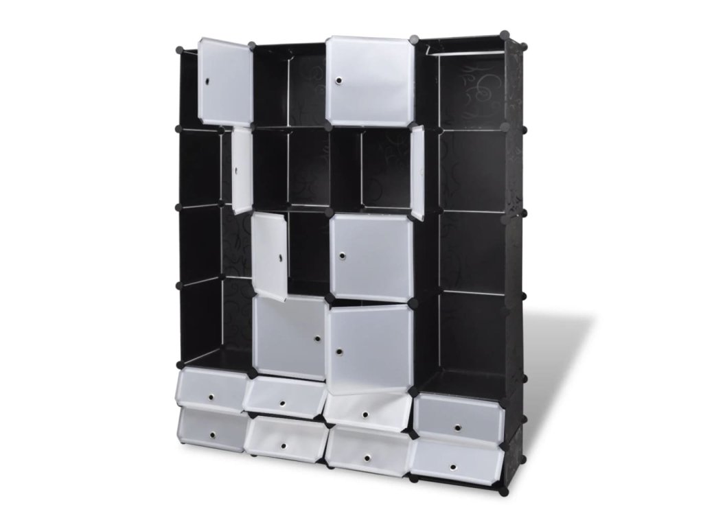 Šatník pozostáva z plastových prvkov a chrómovaných oceľových drôtov, takže sa ľahko čistí. Vďaka svojmu dômyselnému dizajnu sa skriňa dá jednoducho poskladať do rôznych tvarov tak, aby sa hodila do rôznych priestorov a aby ste ju mohli upraviť podľa nálady.