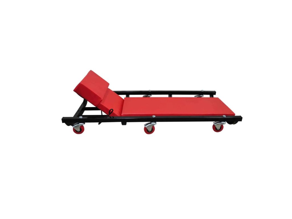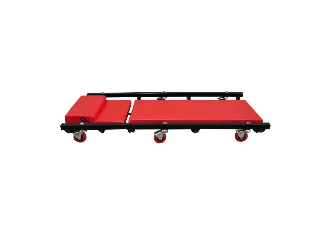 Montážne ležadlo sa skvelo prispôsobí telu a má vinylový stred, ktorý je plne čalúnený a odolný voči mastnote a rozpúšťadlám. Vďaka jeho nízkemu profilu je ideálny pre opravy podvozkov vozidiel alebo keď potrebujete ležať na chrbte.
