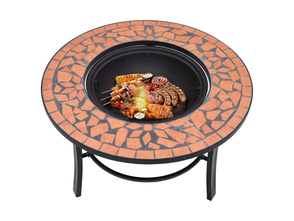 Ohnisko je vyrobené z vysokokvalitnej ocele a dokáže vynikajúco absorbovať a vyžarovať teplo. Môžete v ňom páliť suché drevo, polená alebo drevené uhlie. Ohnisko podopiera trojnohý stojan. Vďaka robustnému dizajnu s mriežkou je ohnisko ako stvorené na grilovanie v záhrade či na terase. Stred ohniska navyše lemuje okrúhla stolová doska, na ktorú si môžete položiť nápoje a grilovacie náčinie. Upozorňujeme, že nie je vhodné výrobok nechávať vonku v chladnom počasí.