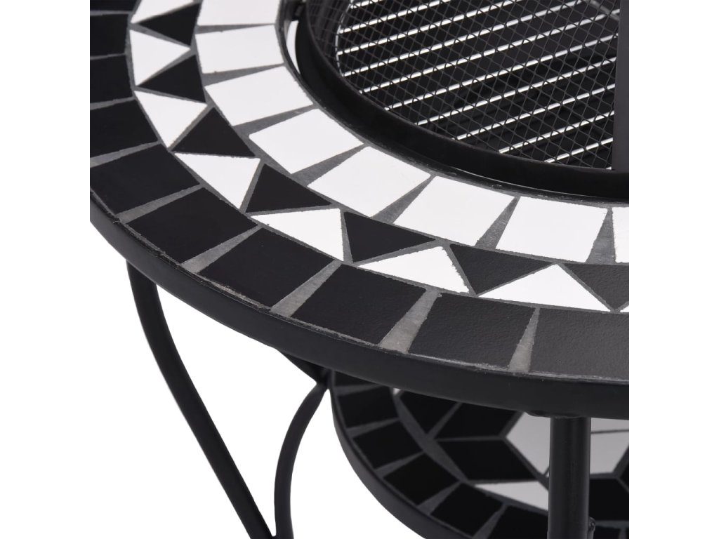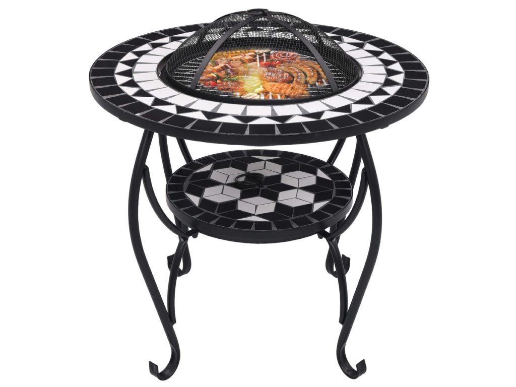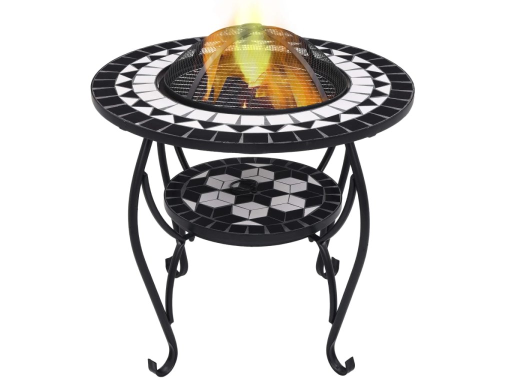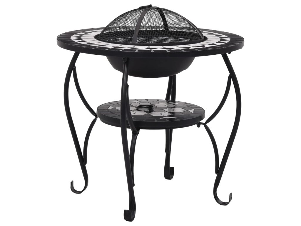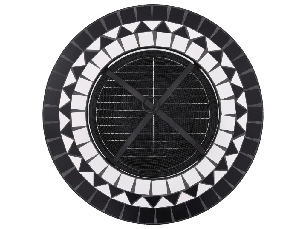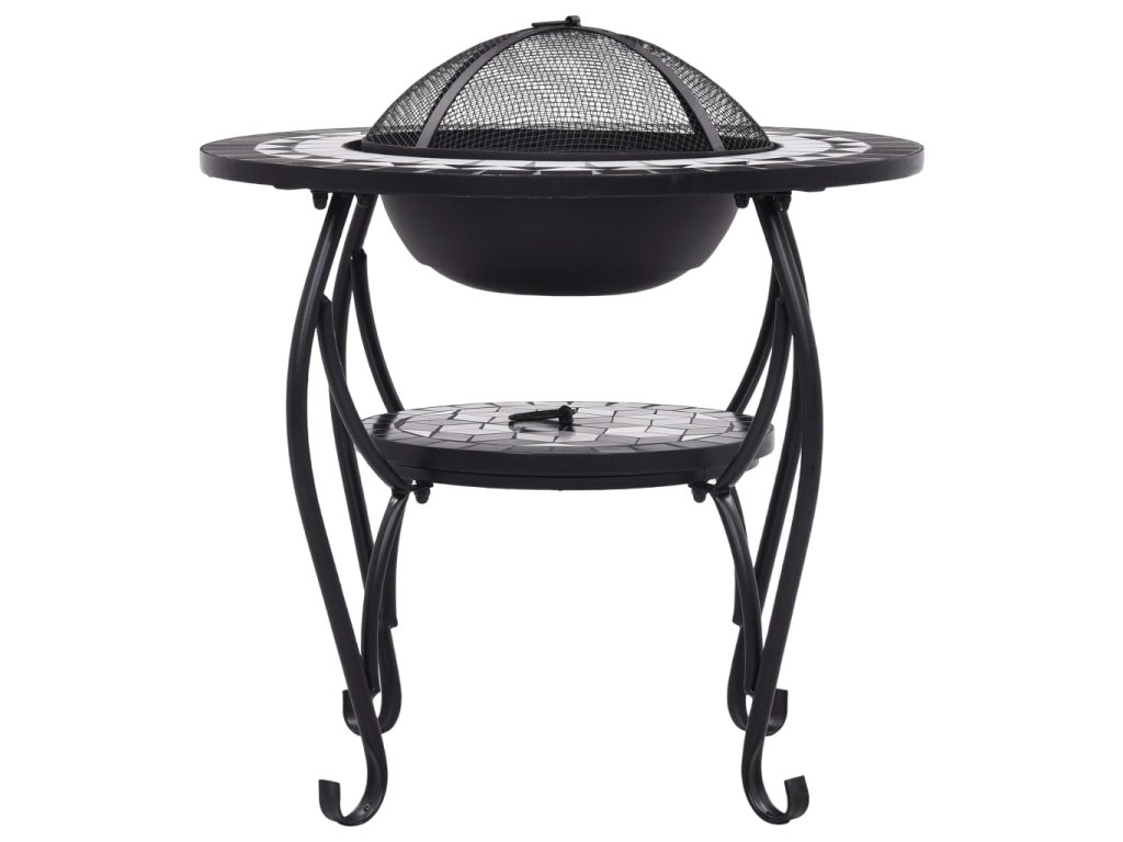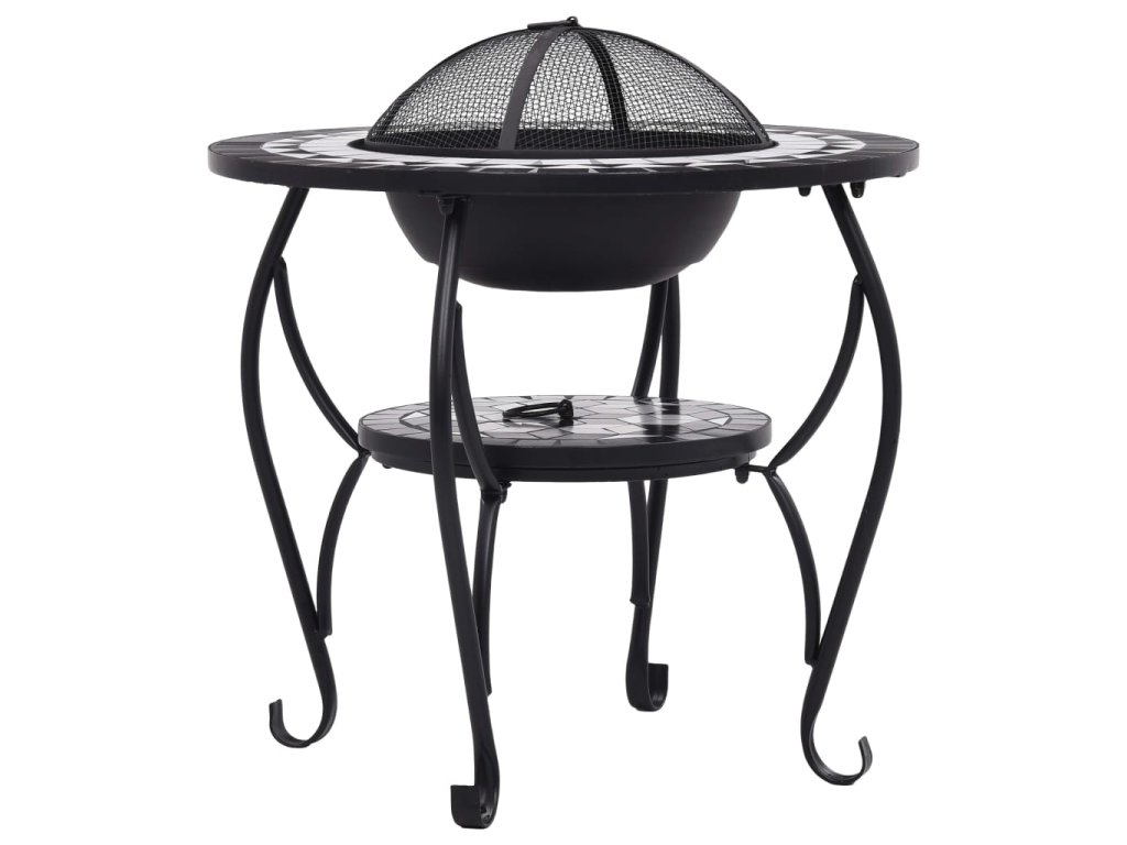 Ohnisko je vyrobené z ocele a dokáže vynikajúco absorbovať a vyžarovať teplo. Môžete v ňom páliť suché drevo, polená alebo drevené uhlie. Ohnisko podopiera štvornohý stojan. Bezpečnostný sieťovaný kryt, ktorý je súčasťou balenia, vám umožní sledovať horiaci oheň a zároveň vás ochráni pred poletujúcimi iskrami a popolom, pretože ohnisko bezpečne zakryje. Odstrániť ho môžete kutáčom, ktorý vám tiež poslúži na prehrabávanie horiacich polienok či uhlia. Ohnisko so stolíkom navyše môžete využívať aj ako gril. Okrúhly keramický povrch predstavuje ideálne miesto na nápoje a grilovacie náčinie. Upozorňujeme, že nie je vhodné výrobok nechávať vonku v chladnom počasí.