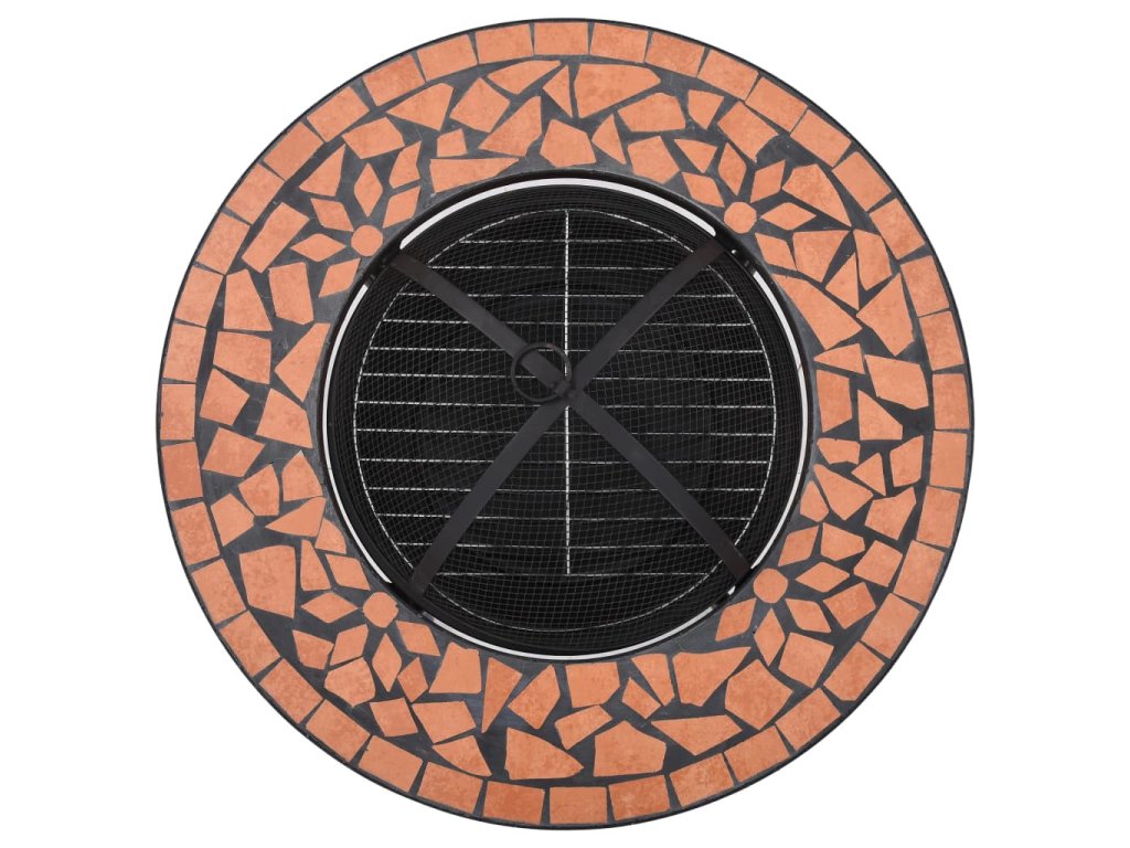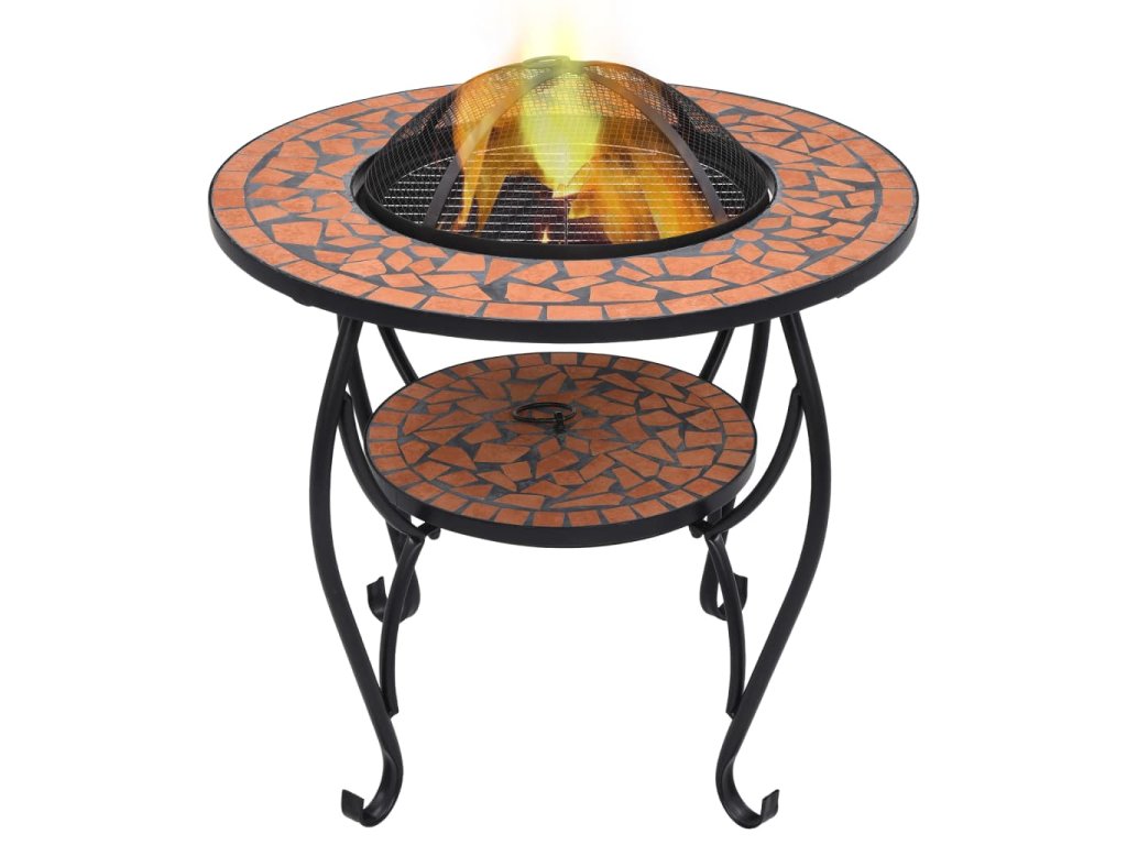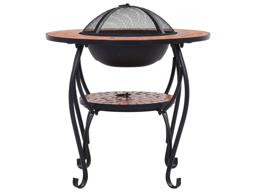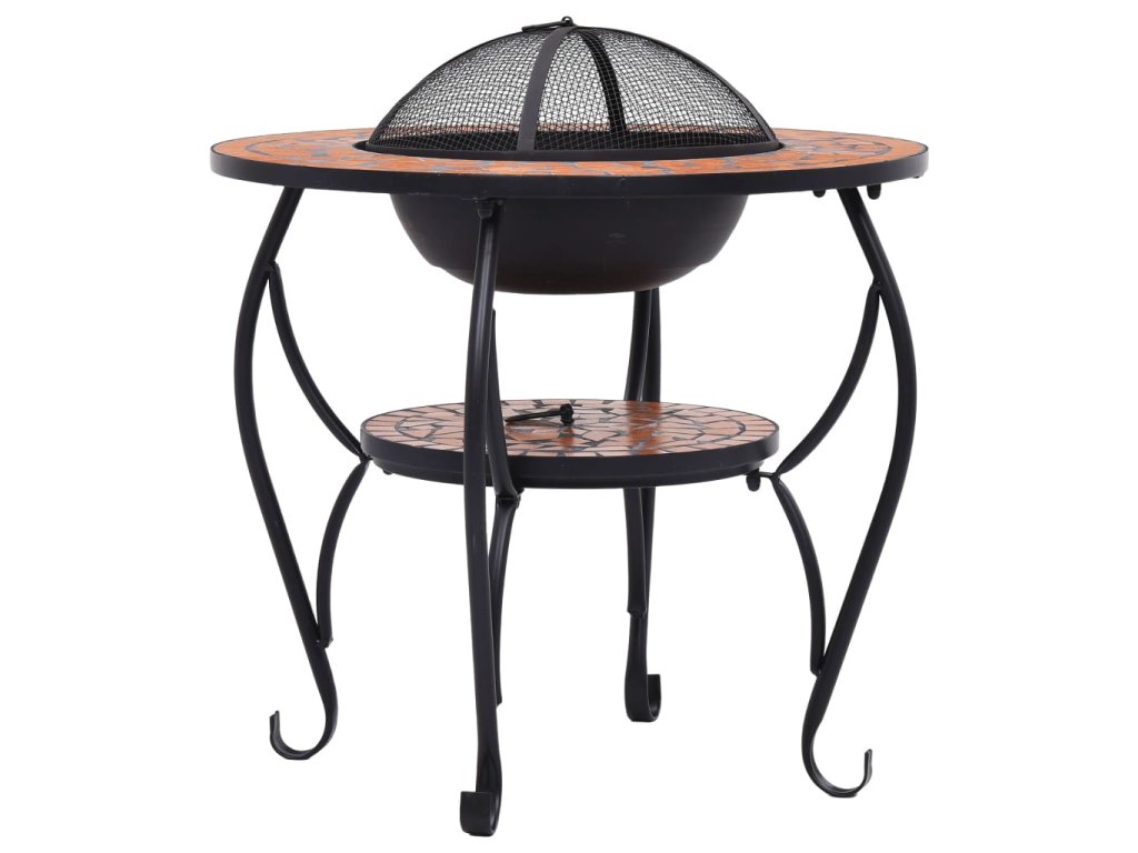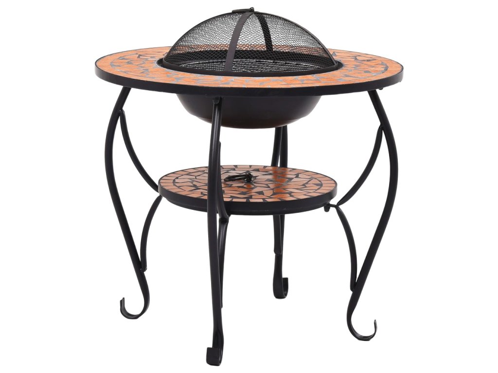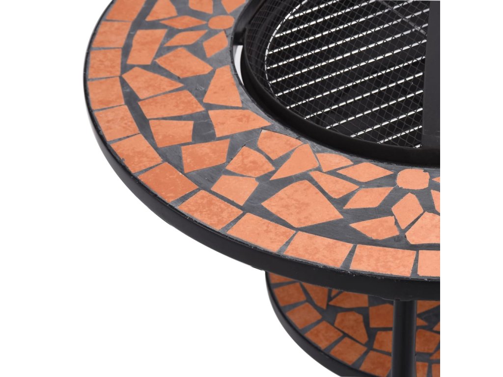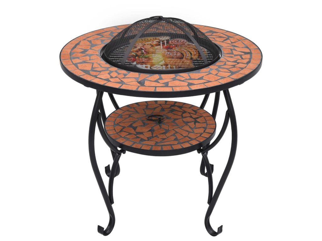 Ohnisko je vyrobené z ocele a dokáže vynikajúco absorbovať a vyžarovať teplo. Môžete v ňom páliť suché drevo, polená alebo drevené uhlie. Ohnisko podopiera štvornohý stojan. Bezpečnostný sieťovaný kryt, ktorý je súčasťou balenia, vám umožní sledovať horiaci oheň a zároveň vás ochráni pred poletujúcimi iskrami a popolom, pretože ohnisko bezpečne zakryje. Odstrániť ho môžete kutáčom, ktorý vám tiež poslúži na prehrabávanie horiacich polienok či uhlia. Ohnisko so stolíkom navyše môžete využívať aj ako gril. Okrúhly keramický povrch predstavuje ideálne miesto na nápoje a grilovacie náčinie. Upozorňujeme, že nie je vhodné výrobok nechávať vonku v chladnom počasí.