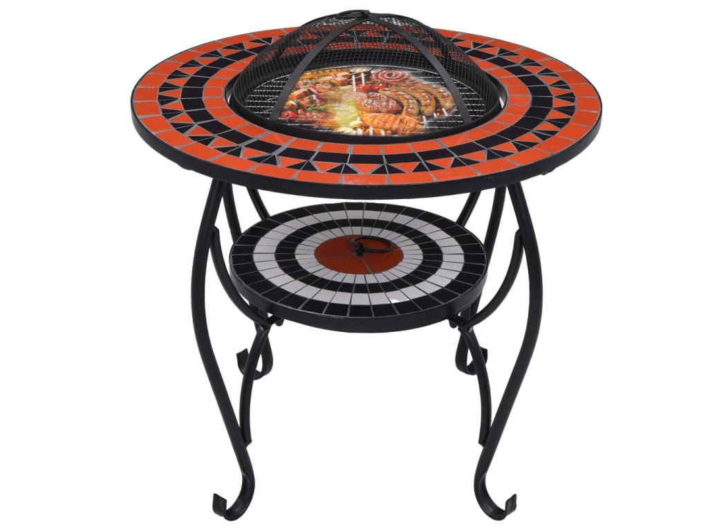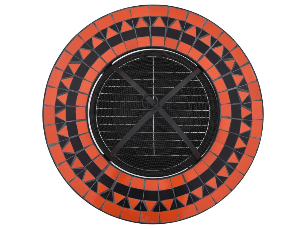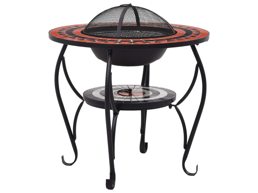 Ohnisko je vyrobené z ocele a dokáže vynikajúco absorbovať a vyžarovať teplo. Môžete v ňom páliť suché drevo, polená alebo drevené uhlie. Ohnisko podopiera štvornohý stojan. Bezpečnostný sieťovaný kryt, ktorý je súčasťou balenia, vám umožní sledovať horiaci oheň a zároveň vás ochráni pred poletujúcimi iskrami a popolom, pretože ohnisko bezpečne zakryje. Odstrániť ho môžete kutáčom, ktorý vám tiež poslúži na prehrabávanie horiacich polienok či uhlia. Ohnisko so stolíkom navyše môžete využívať aj ako gril. Okrúhly keramický povrch predstavuje ideálne miesto na nápoje a grilovacie náčinie. Upozorňujeme, že nie je vhodné výrobok nechávať vonku v chladnom počasí.