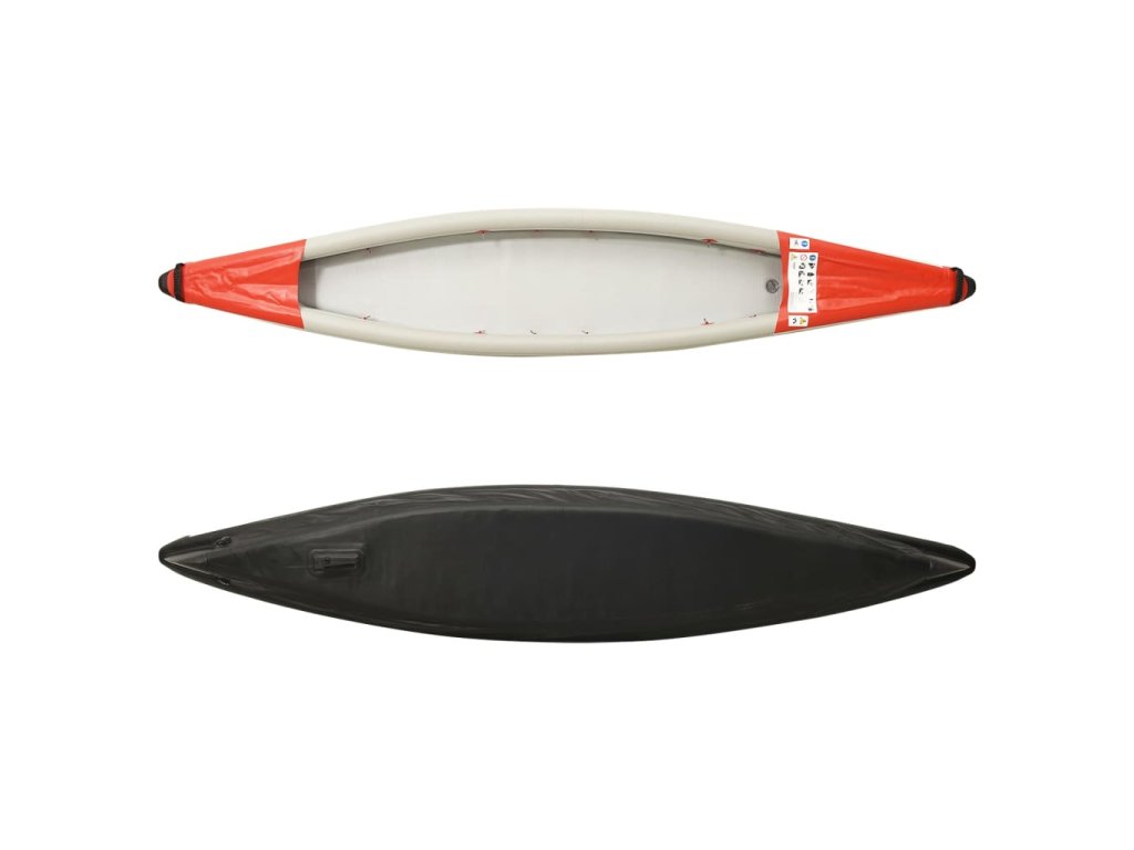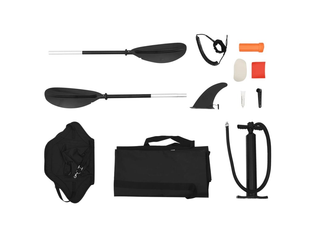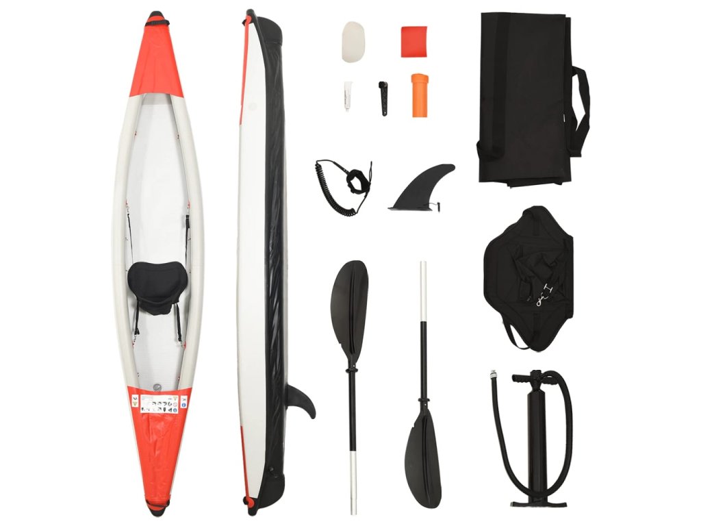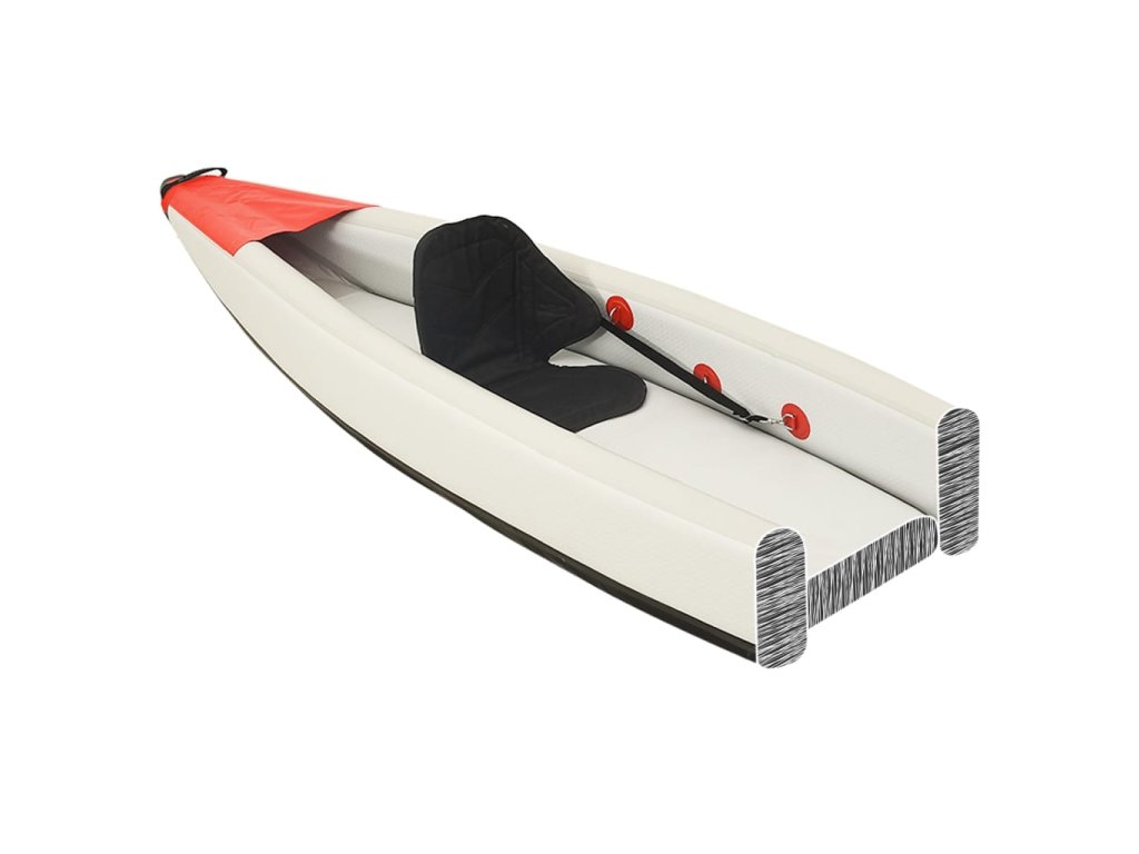 - Odolný materiál: Tento nafukovací kajak, vyrobený z odolného polyesteru s PVC povrchom, má jednoduchý a elegantný vzhľad, a je priedušný a odolný.